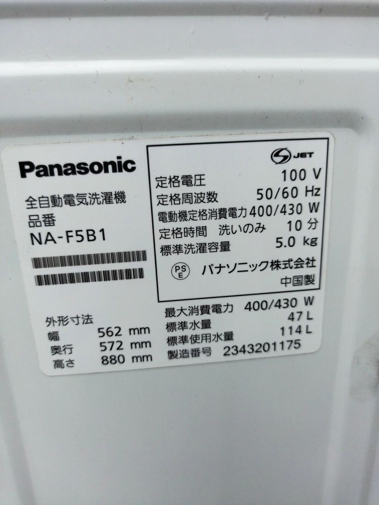 【高年式(2023年製)お届けも可能です】Panasonic 洗濯機 2023年製 NA-F5B1 洗濯容量5.0キロ