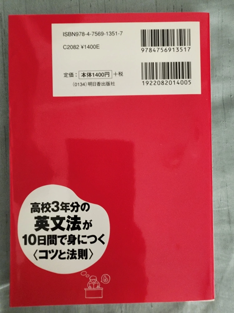 ・高校3年分の英文法が10日間で身につく ・2009年12月12日初版出版 ・2011年3月26日第10刷 ・定価本体1400+税 書き込みなし