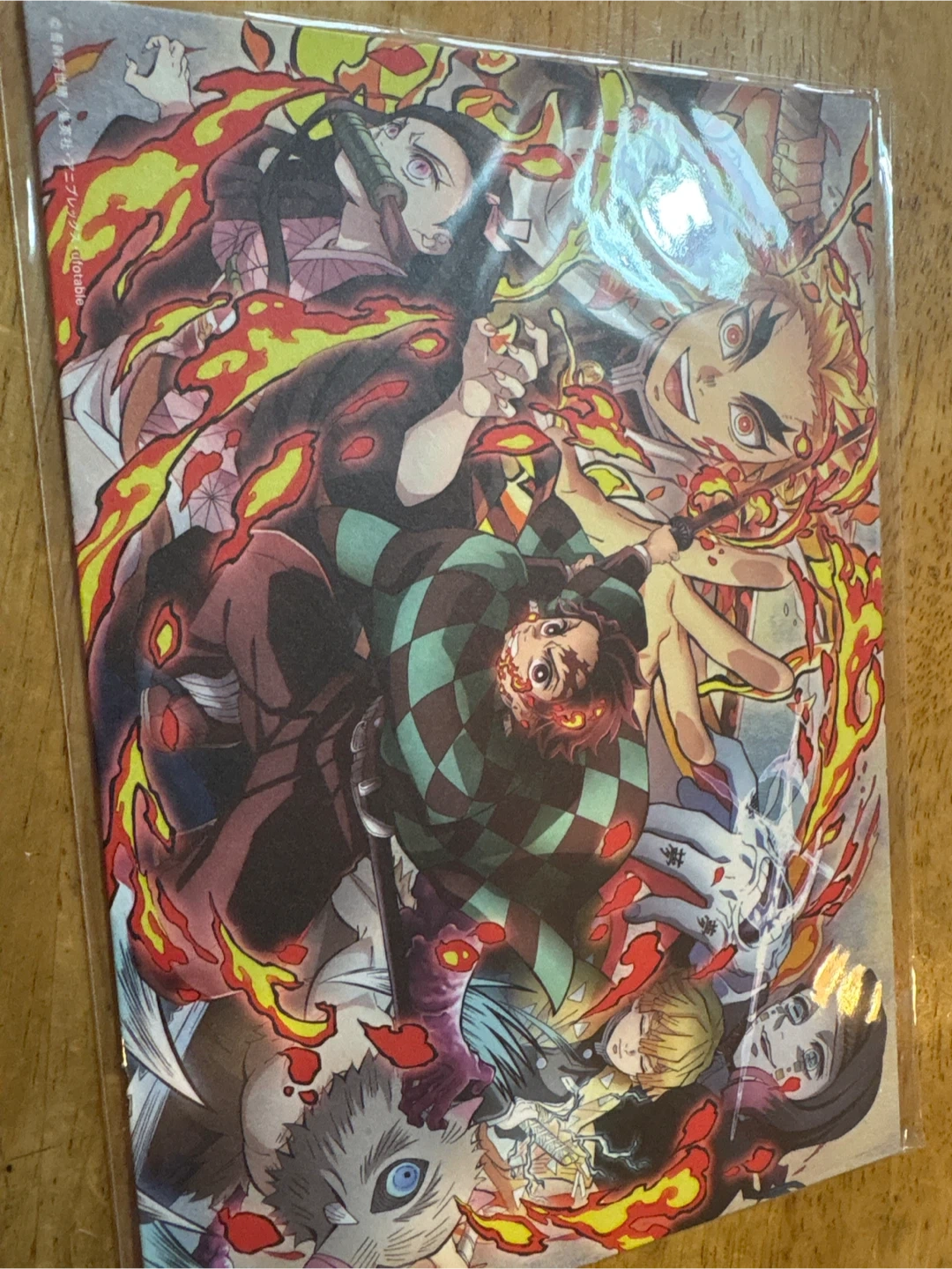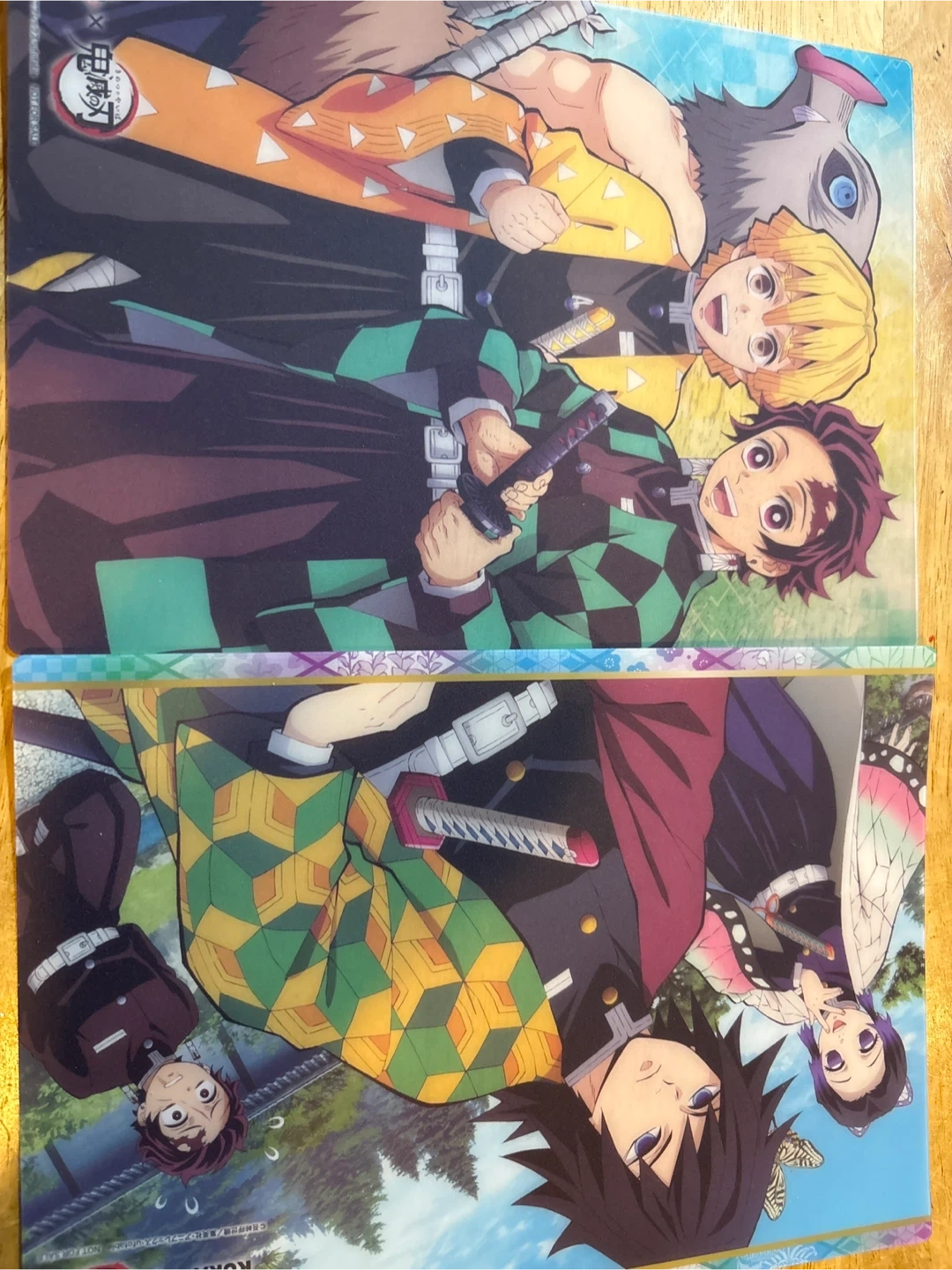鬼滅の刃の下敷き2枚セット。 くら寿司購入時のオマケです。 2枚目は無限列車編の時の映画の特典ですが、ご興味あればオマケに差し上げますのでおっしゃってください。