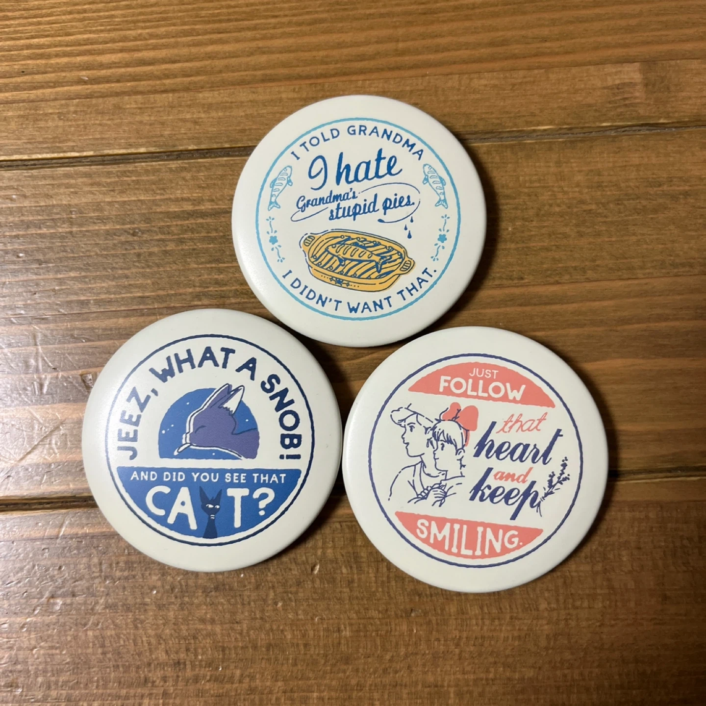 ご覧いただきありがとうございます♪ ジブリ【魔女の宅急便】の缶バッジです。 自宅保管しておりました。 大きな傷、汚れはありませんが、写真をよく確認お願い致します。