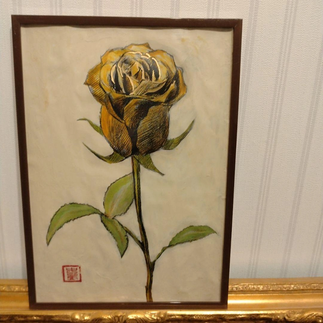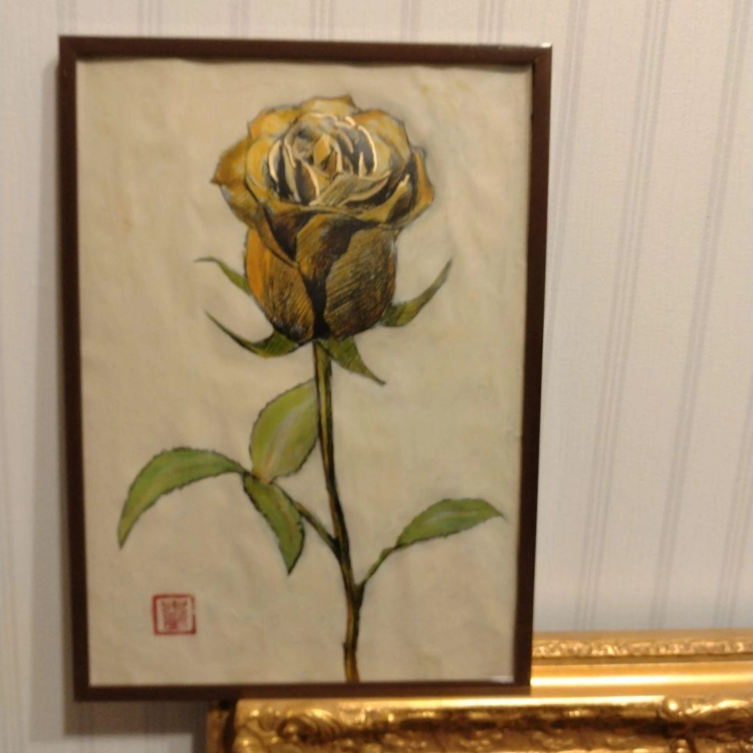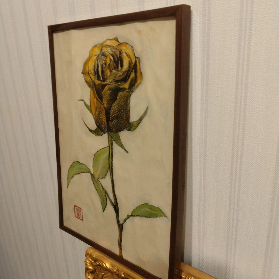 手描きのバラの絵画、黄色と緑の色合いが特徴。 アート作者:中島正喜 サイズ: A4サイズ 技法: 手描き、アルコールインク、珪藻土、色鉛筆 テーマ: バラ1輪 ご希望の方はお気軽にご連絡ください。