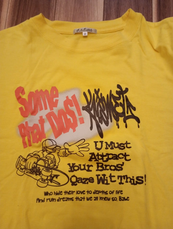 グラフィックTシャツです。 新品未使用品です。クローゼット整理のため出品いたします。 【ブランド】le ex & club 【カテゴリ】半袖 【商品の状態】未使用 【サイズ】3L(XXL) 【素材】綿100%(タグ表記) 【カラー】黄色(鮮やかな黄色です。若干の個体差があるかもしれません。) 【サイズ詳細】着丈:約78cm、身幅:約60cm、肩幅:約55cm、袖丈:約24cm(平置き採寸。多少の誤差はご容赦ください。) 自宅保管のため、神経質な方はご遠慮ください。ペット、喫煙者はいません。 よろしくお願いいたします。 #ネイバーフッド #シュプリーム #ステューシー #エイプ #ストリート #ナイキ #アディダス #バンズ #コンバース #ヒップホップ #スケート #スケーター