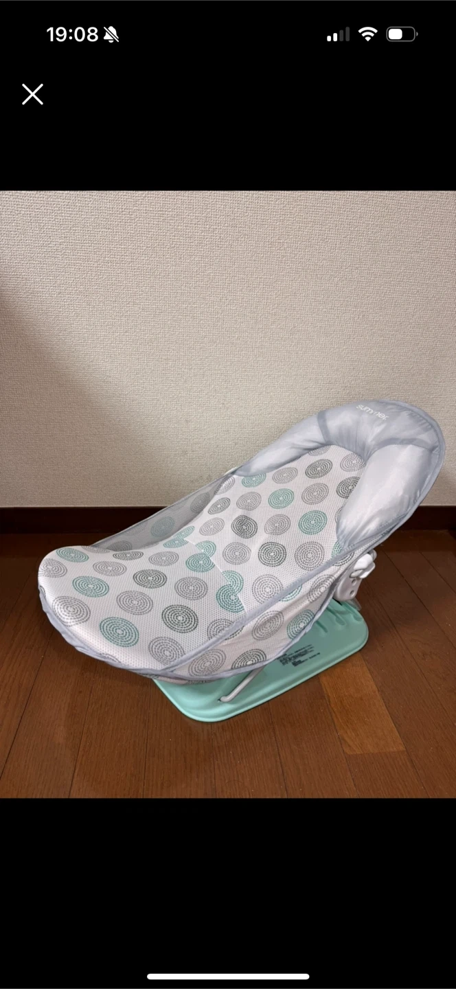 (株)日本育児さんのベビーバスチェアです。 ワンオペになる時に使おうと思いましたが、あまり使わず… 背中の部分がメッシュになっていて泡が流しやすかったり、リクライニングが出来るので便利だと思いますが、うちの子は首や腰が座るのが早かったので、膝の上で洗うのが楽になってしまい、1〜3回くらいしか使ってません。 畳み方に少々コツが入いりますが、説明書を見れば簡単です! 下に説明書のリンクを貼っておきます。 https://www.nihonikuji.co.jp/pdf/softbathchair.pdf