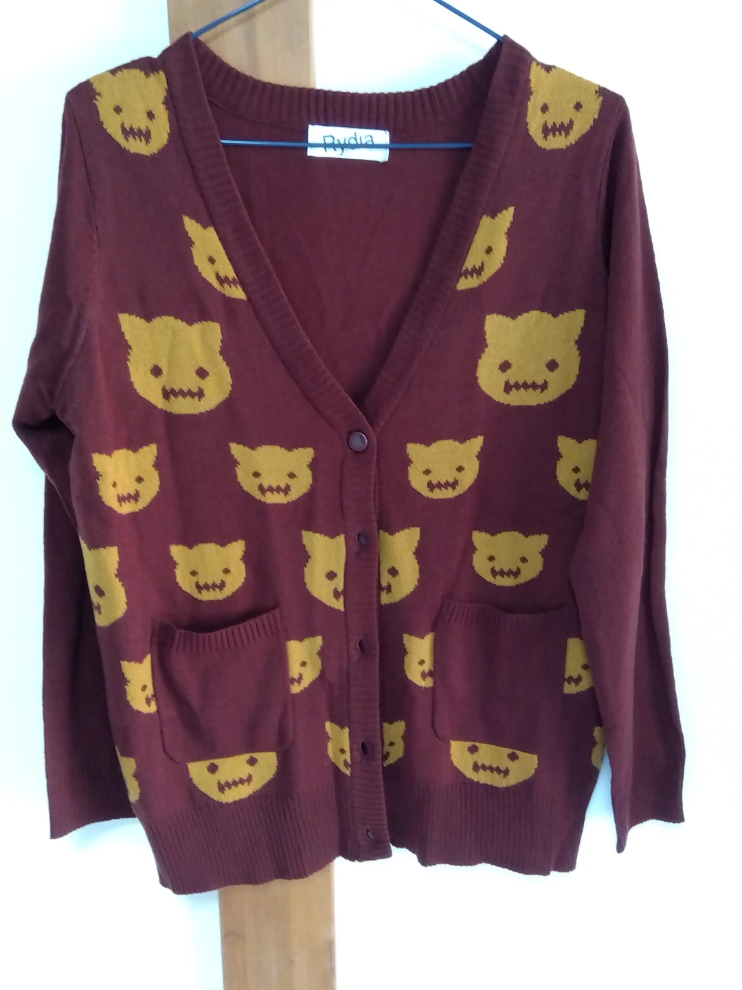 引っ越し整理で出てきたので、出品します。 サイズ︰タグではM表記です 色は1枚目の画像が近い赤紫(サツマイモ色)です 模様は小悪魔にも見えますが、おそらく ネコだと思います ボタンにも同じ模様が入っています スペアのボタンを1つ、ポケットに入れています ★猫を飼っている環境にて保管されていました 念入りにコロコロはかけたつもりですが、気にされる方や猫アレルギーの方はご注意ください 念のため出品時点で改めてホームクリーニング済です 梱包などは一切無しでそのまま渡しになりますので、エコバッグなどの入れ物はご準備ください。 (オトク情報) 他の100円出品物と一緒に希望される場合は、他の100円の品はいくつでもタダになります。