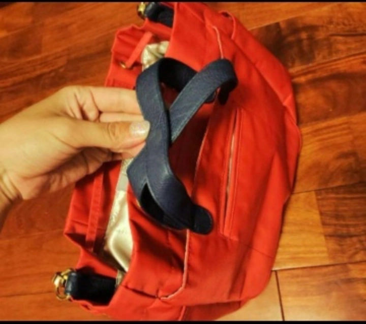赤、ブラッドオレンジといった、鮮やかなカラーです。 ポケットたっぷり、収納スペースが小分けになっていて、使い勝手の良いハンドバッグです。 キャリーオンとして、スーツケースにひっかけて使用する事も可能です。(画像7枚目の、手を突っ込んでいる箇所です) その他にも、小さなポケットが沢山あります。 肩掛けショルダーバックとしての利用も可能です。 2wayハンドバックROOTOTEルートート鮮やかブラッドオレンジ鞄ネイビー紺色