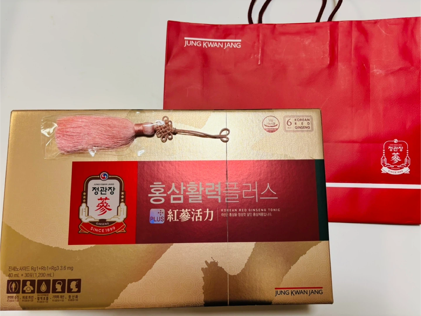 <新品>正官庄6年根 高麗人参 「正官庄 紅参活力プラス」 40ml × 30パウチ 賞味期限 2027年04月12日 摂取方法:食後または食間 1日1回 免疫力Upしましょう! 冬に体を温めましょう! * 韓国人参公社の正官庄ブランドの6年根紅参を使用した健康機能食品です。