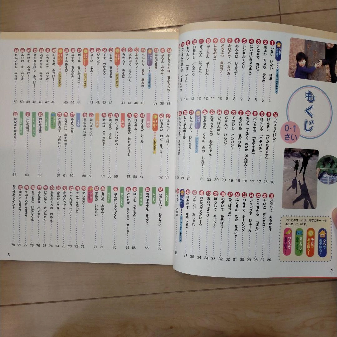「0・1さいのあそび100」 中島 美智代 定価: ¥ 980 おさがりをいただいたものです。 外遊びやお部屋での遊びアイデア、歌など盛りだくさんの内容です。 カバーや表紙はシワがありますが、中身はきれいかと思います。 ご希望の方はお気軽にご連絡ください。