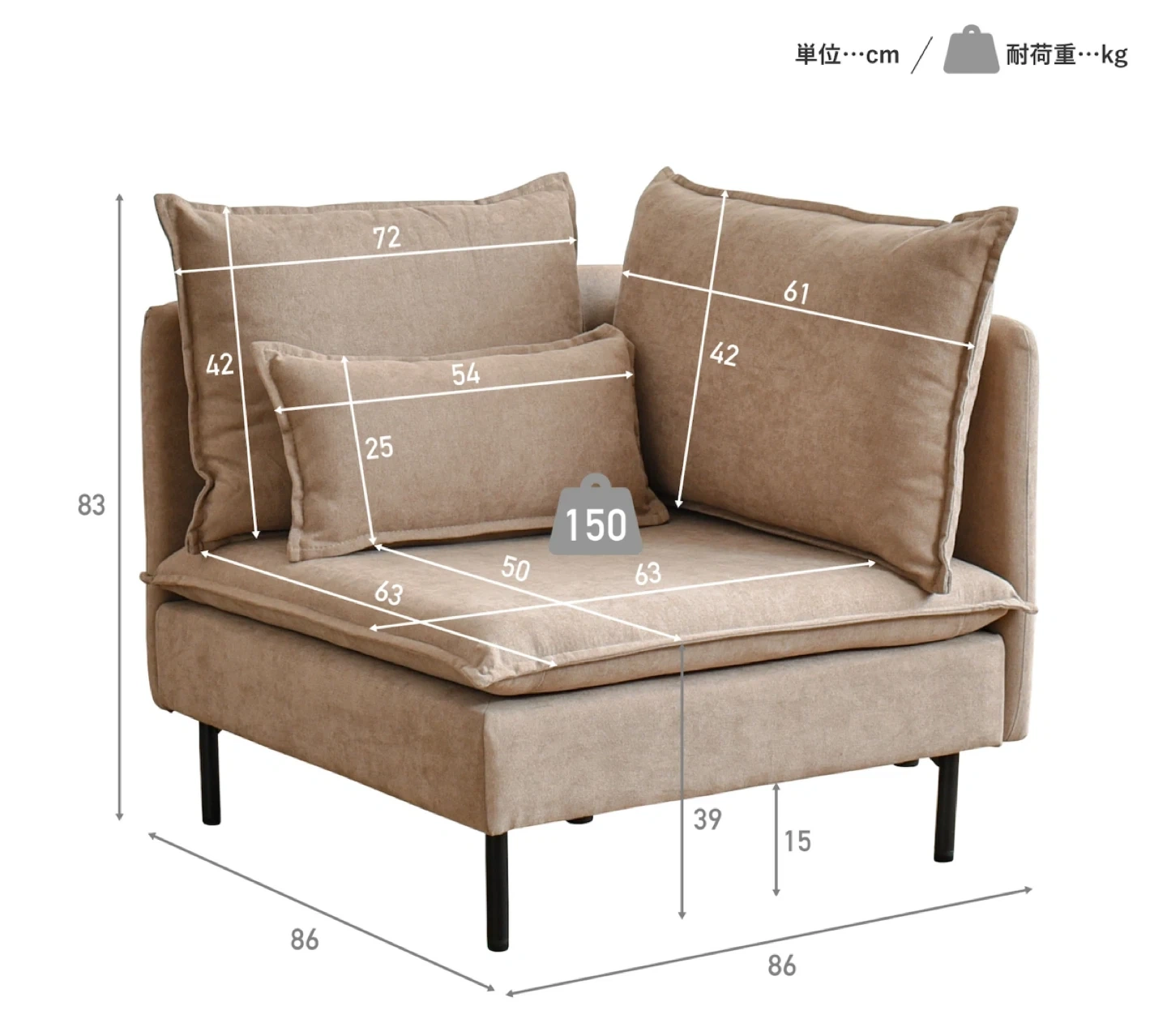 • サイズ・寸法約86cm x 86cm x 83cm