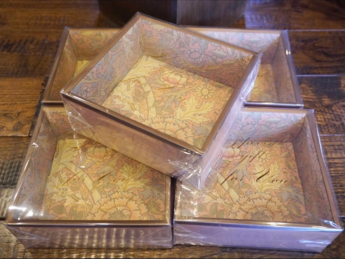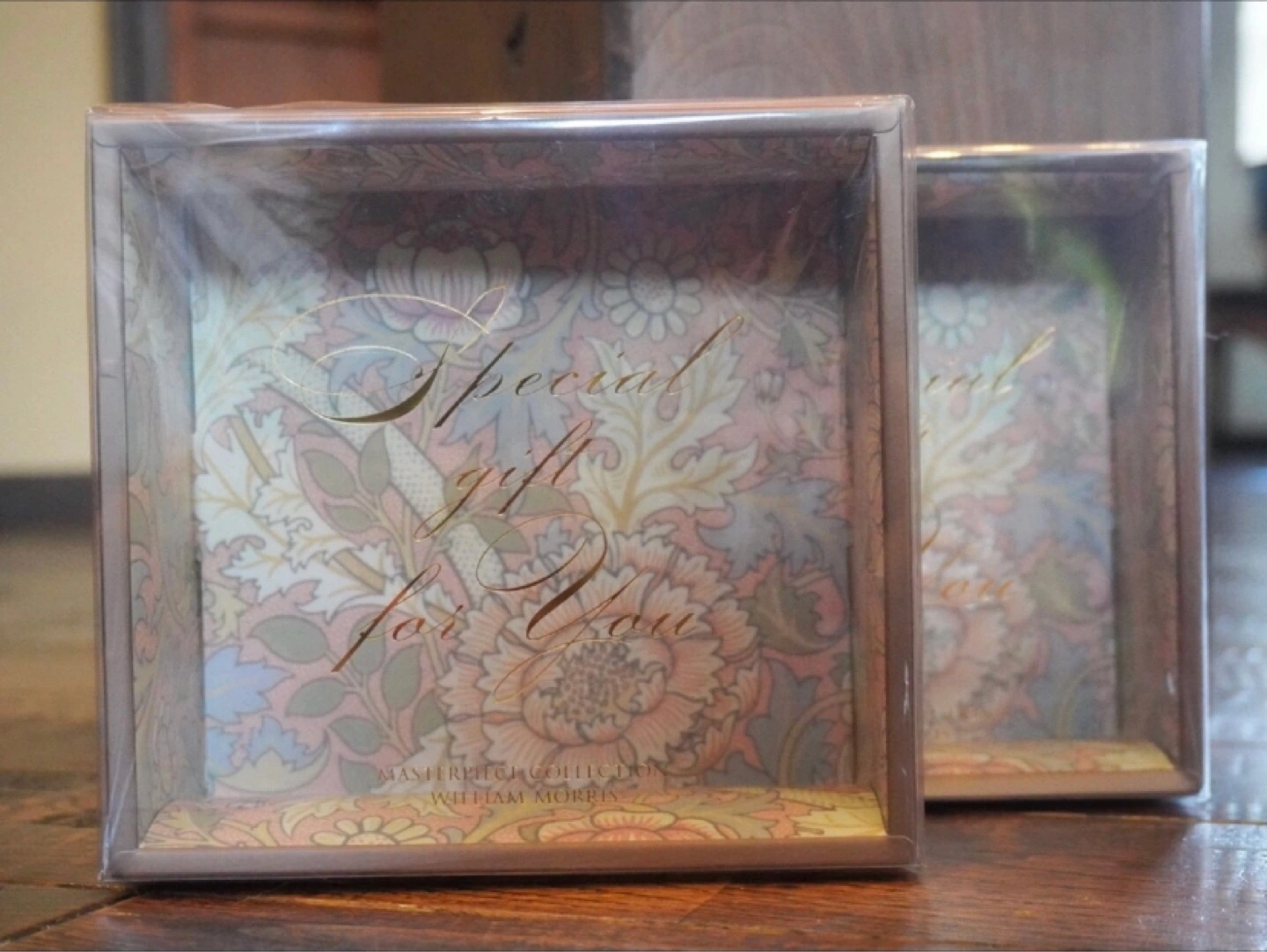 ウィリアム・モリスの『スリーブボックス』新品未使用 おまとめ、別売りも可能! 1箱110円 全4箱 手作り菓子やプレゼントのギフトボックスとして可愛くオシャレに仕上がります。 その他使い方色々! ご自宅用に!プレゼントはもちろん、バレンタインやホワイトデーのラッピングにも最適です。 サイズ:約150×140×高さ63mm(内) 約160×150×高さ65mm(外) ウィリアム・モリスは英国のデザイナーで 身近な植物や動物をモチーフに描いた繊細なデザインが有名です。
