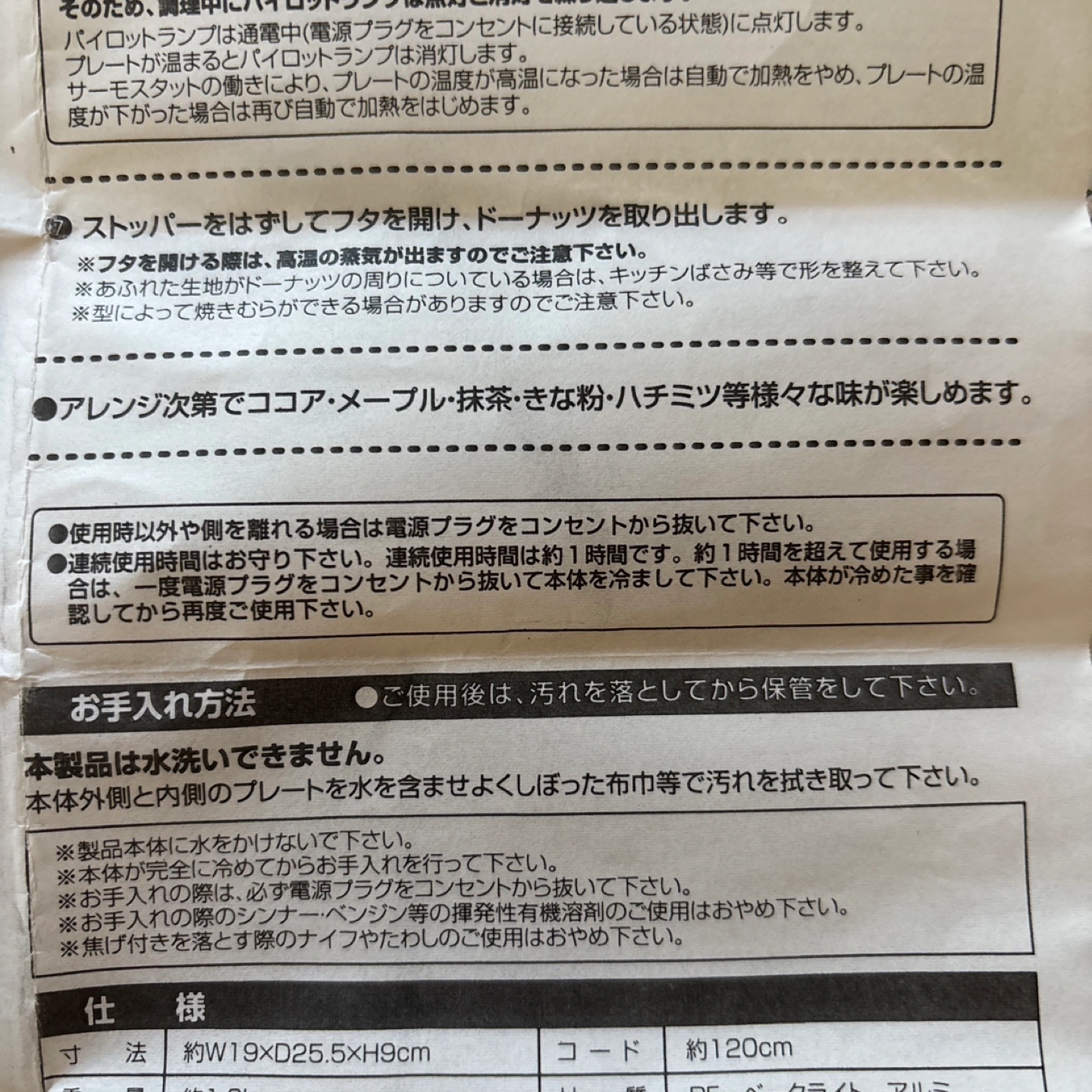 7個のドーナツを一度に焼けるホワイトのドーナツメーカー、作り方、説明書はあります。 ホットケーキミックスでつくります。 アレンジ次第でココア、抹茶、きな粉、ハチミツなどさまざまな味がたのしめるようです。 一〜二回しか使用していませんので比較的綺麗かと思いますが自宅保管品、中古品になります。ご理解ある方にお譲 りします。 コンセントをさし、ランプがつきます。通電は確かめました。 - タイプ: ドーナツメーカー - 焼き型数: 7個 - 色: ホワイト -販売会社 株式会社マクロス ご覧いただきありがとうございます。 #ドーナッツメーカー #手作り #ハンドメイド #手作りおやつ #スィーツ #ドーナッツ #ドーナツ