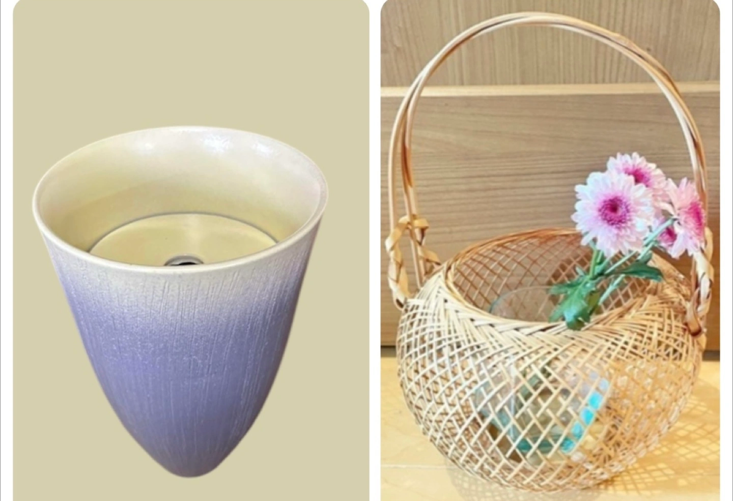 花器2点まとめて バラ売りは各1500円 ◆薄黄色、藤色グラデーション 剣山置きは外れません。 直径16cm 高さ23cm ◆竹の花器 φ20cm 高さ28cm、籠の縁までは12.5cm 数本挿すだけで楚々とした可愛らしい雰囲気が出ます。 ・花器 - 色:白、青紫のグラデーション ・持ち手付き竹籠 【お願い】 取引日時の調整をスムーズにするため、 必ずをご記入ください。 1. こちらに来られる「候補日時を2つ以上」 2. あるいは来られない日時(NG時間帯があれば) 記載がない場合はこちらからの返信を見送る場合があります。 あらかじめご理解ください。
