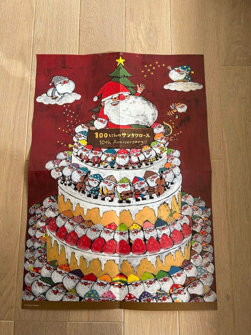 100にんのサンタクロースの絵本を購入した際に綴じ込みでついてきました。 絵本「100にんのサンタクロース」刊行10周年記念の描き下ろしポスター ポスターのみ、絵本は付きません。 ポスター上部にテープ、テープ跡有り。 ご希望の方はお気軽にご連絡ください。