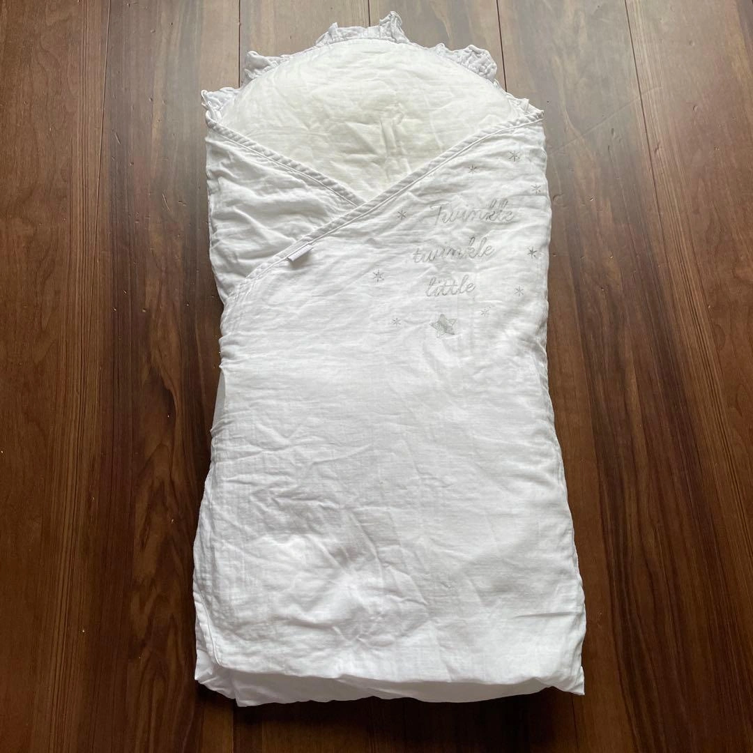 10mois(ディモワ)のたまごマットおくるみです。 抱っこもしやすく、写真映えもします! 薄手のダブルガーゼ素材なので年中使えます。 マジックテープの付着具合は良好です。 丁寧に検品しておりますが、その他見落としがありましたらご容赦ください。 洗い替えに手作りしたおくるみも一緒にお譲りします。たまごマットが入るような形にしてあります。 たまごマットを入れなくても、膝掛けやマットのように敷いても使えるかと思います。素材はしっかり目のコットンガーゼ生地です。 ホームクリーニング済みです。 使用品の為、ご理解お願いいたします。 小さく折り畳み圧縮いたしますので、あらかじめご了承ください。 定価 : 6930円(税込) ディモワ たまごマットおくるみ CLOUDクラウド ご希望の方はお気軽にご連絡ください。