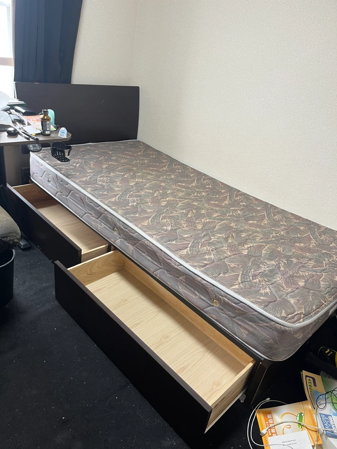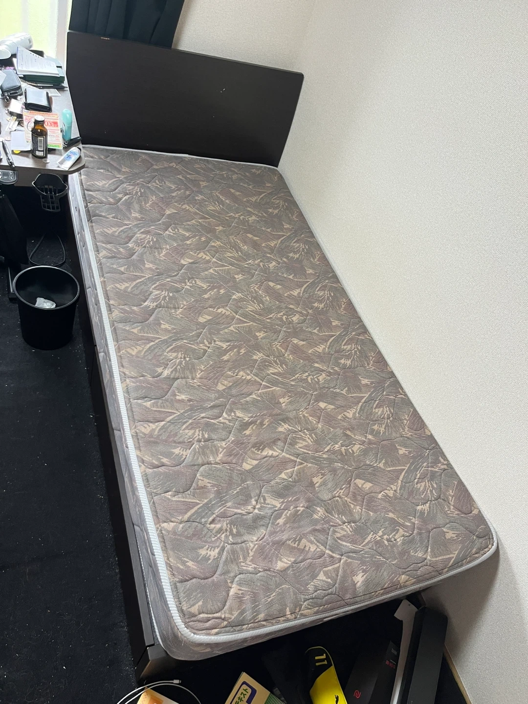 11月上旬に取りに来て欲しいです。 11月1日or2日取りに来れる方を優先にします。 マットレスとベッドフレームのセットです。 ・マットレスの柄:リーフ柄 ・ベッドフレーム色:ダークブラウン ・引き出し収納付き ・使用感あり 【注意点】 自分で分解する必要がある 保証なし 返品不可 中古品であることご了承ください