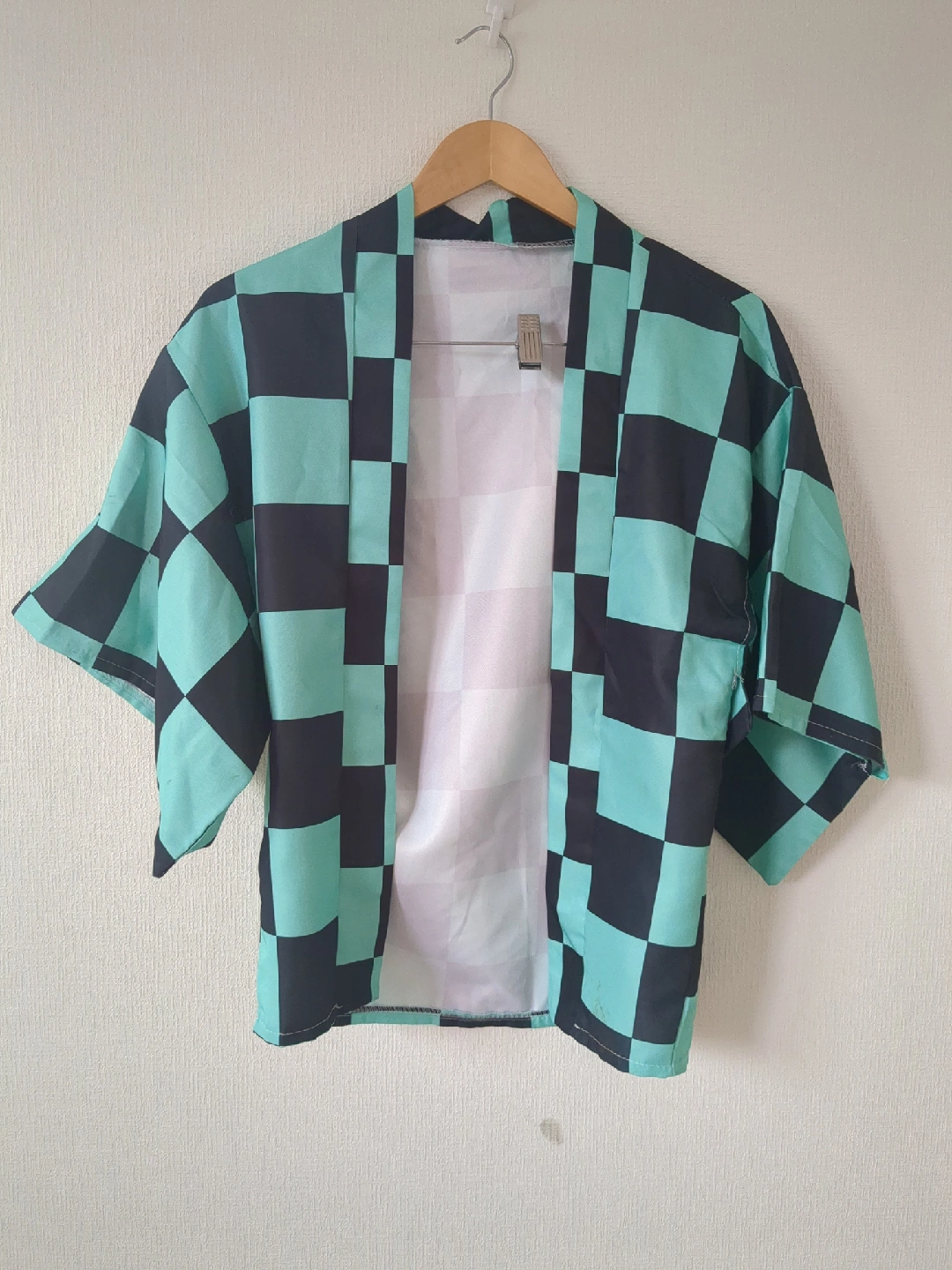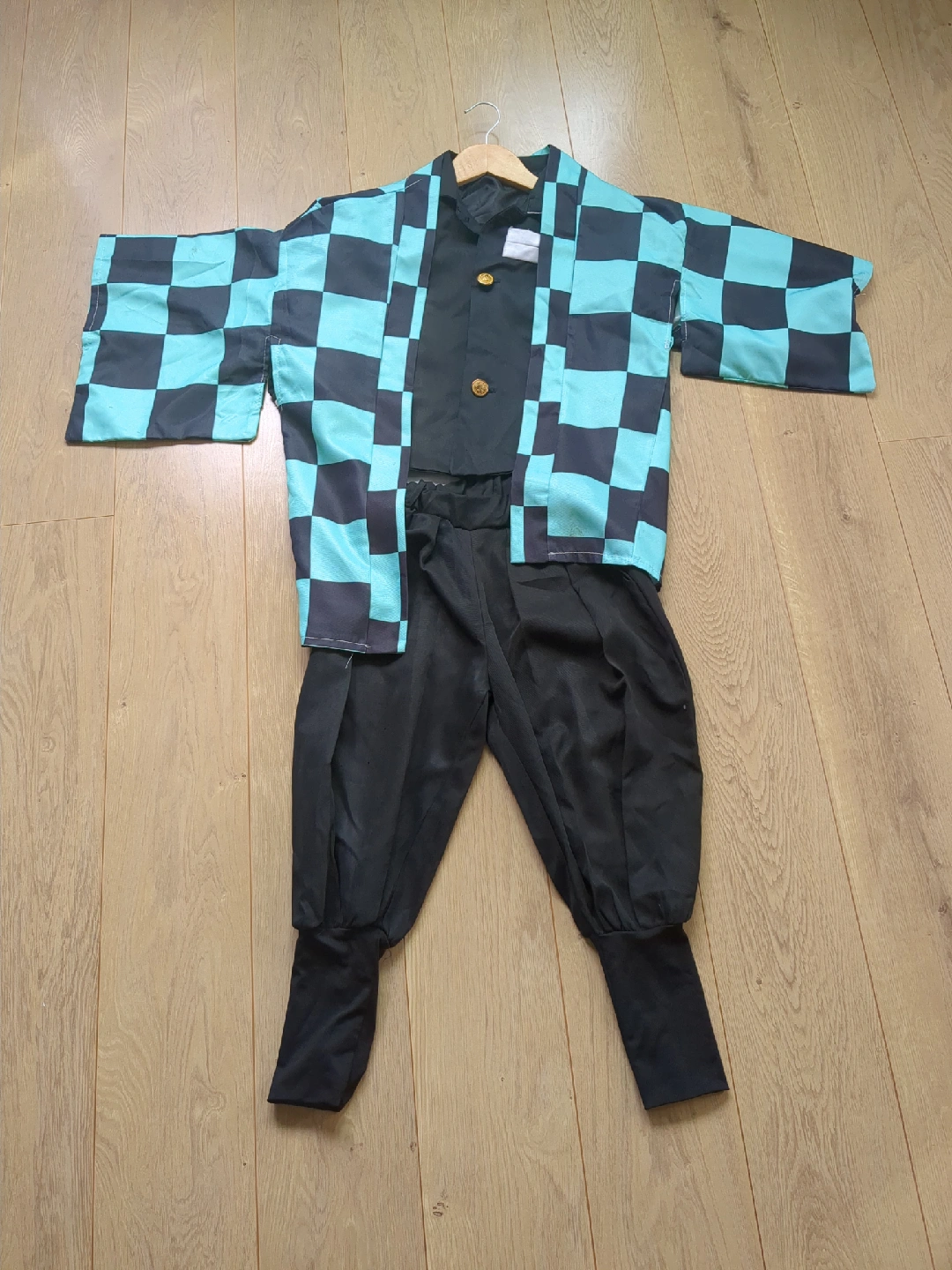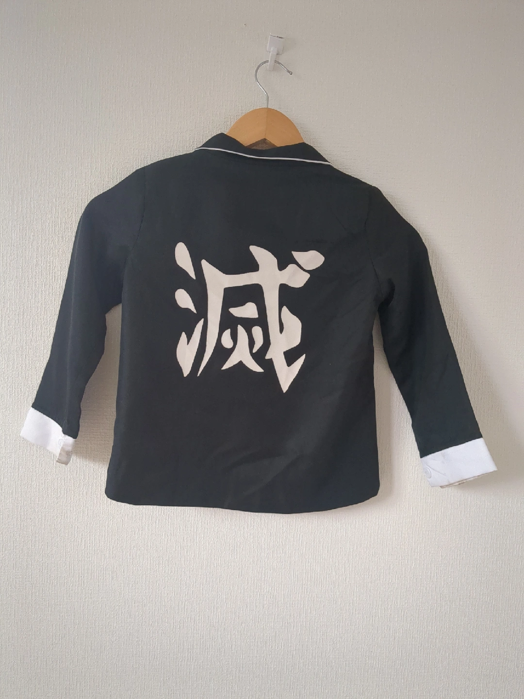 鬼滅の刃の子供用コスチュームです。 ・サイズ:不明 ・色:緑と黒の市松模様、黒 ・状態:一部に汚れあり 上のボタン無くなってます ・背中に「滅」の文字 中古品であることご了承ください。