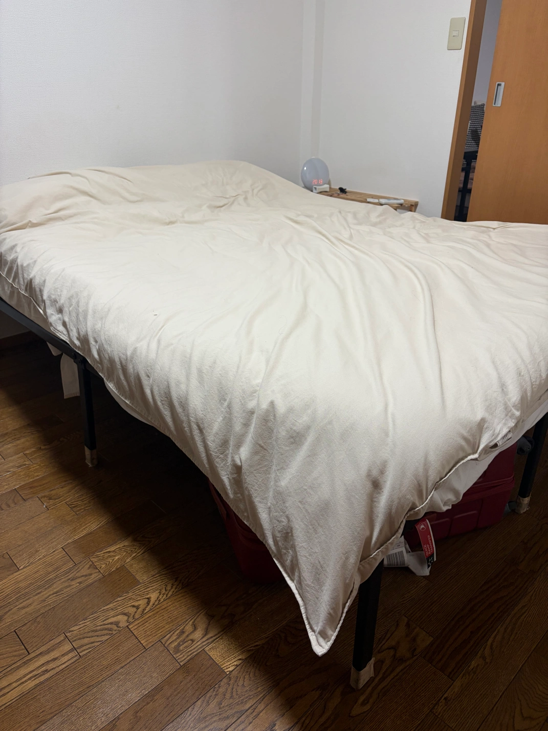 引っ越しのため、140x200サイズのベッドをお譲りします。 ✅ マットレス、掛け布団、枕付きです。すぐにご使用いただけます。 ✅ ベッドの高さがあるため、下にスーツケースなどの収納が可能です(大きめのスーツケース4個が入ります)。 ✅ 全体的に**とても良い状態(美品)**です。 新生活を始める方や、寝具一式をお探しの方におすすめです。 ご興味のある方はぜひご連絡ください!