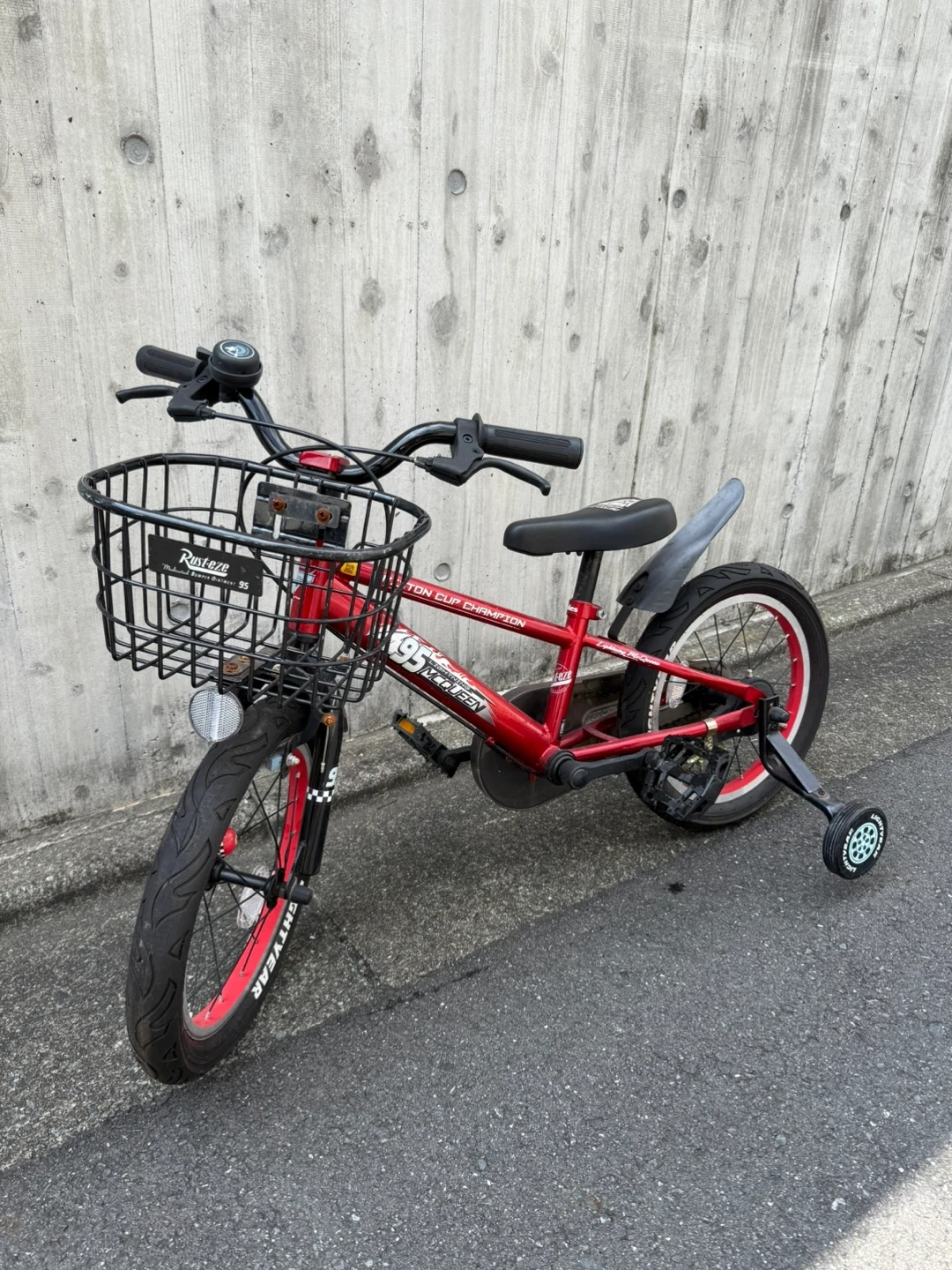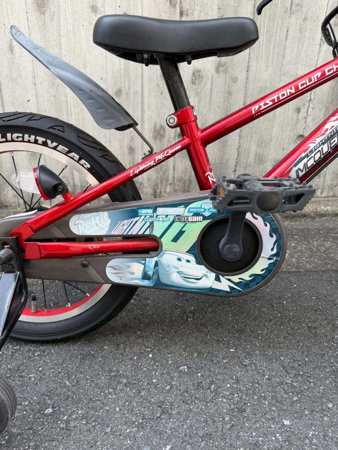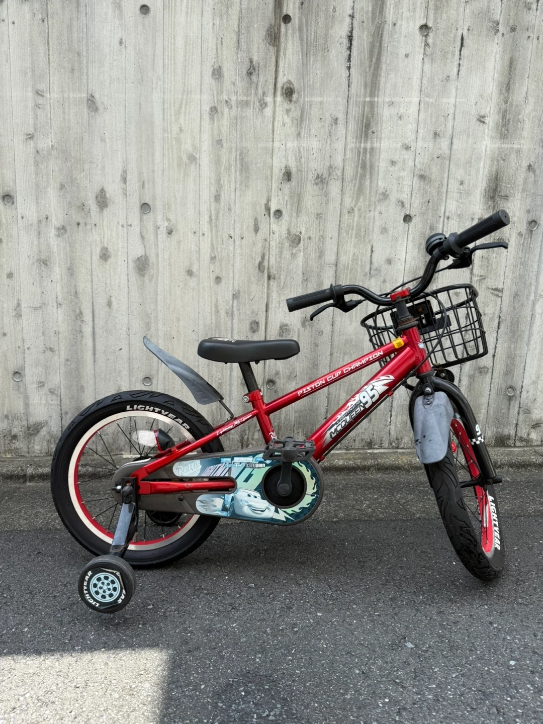 お値段交渉可能です。 子供用補助輪付き自転車 ディズニー・カーズ デザイン 数年前に初めての自転車用として購入しました。 譲渡証明書付きでお渡しいたしますので 防犯登録の手続きをお願いいたします。 サビがある部分や日焼けで絵柄がだいぶ色抜けしてしまっていますが、逆に気を使うことなく使っていただけるかなと思います。 [製品詳細] https://www.idesnet.co.jp/customer/oldmodel/withfriendpartycars16-18/ メーカー:アイデス社 シリアルナンバー:WFF002601 製品名:ウィズ フレンド Party カーズ16(生産終了モデル) サイズ:16インチ 購入時価格:¥30,580(税込) ↓(下記情報は類似商品の情報です。ご参考までに。) 製品寸法1:W470×L1170×H830mm 製品重量:11kg 身長目安:98~120cmくらい 乗車体重目安:20㎏まで 取りに来ていただける方限定