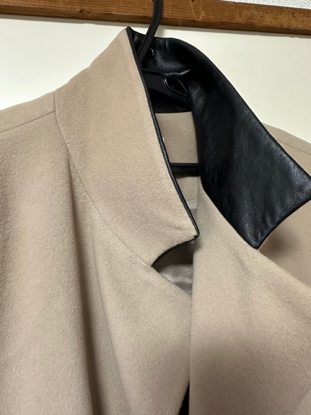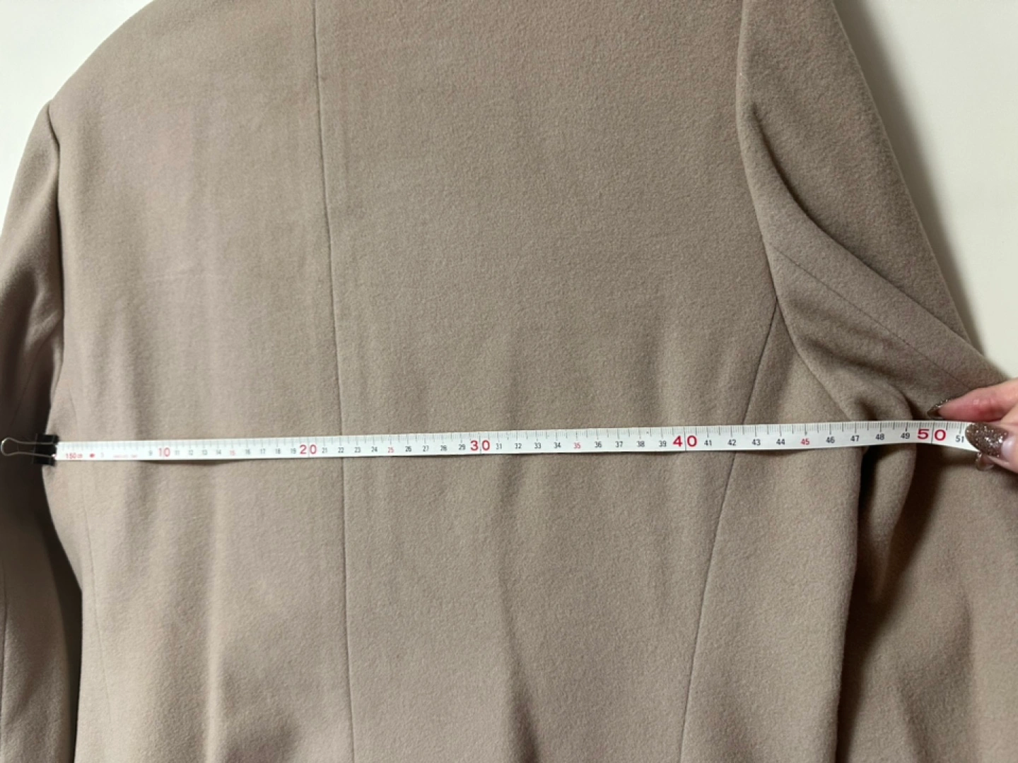※引越しの為、2月末まで限定 - 色: ベージュ - 素材: ウール系 - 襟の素材: レザー系 - ボタンの色: 黒 - ポケットの数: 3 - デザイン: シングルブレスト - スタイル: カジュアル ※30年程前に頂いた物で長期自宅保管しておりました。新品未使用となりますが、ボタンがひとつ飛んでます。(写真をご確認ください) 袖のボタンを付け替えれば問題なく着れると思います。 肩幅···45cm 身幅···50cm 袖丈···60cm 着丈···80cm