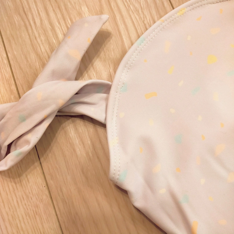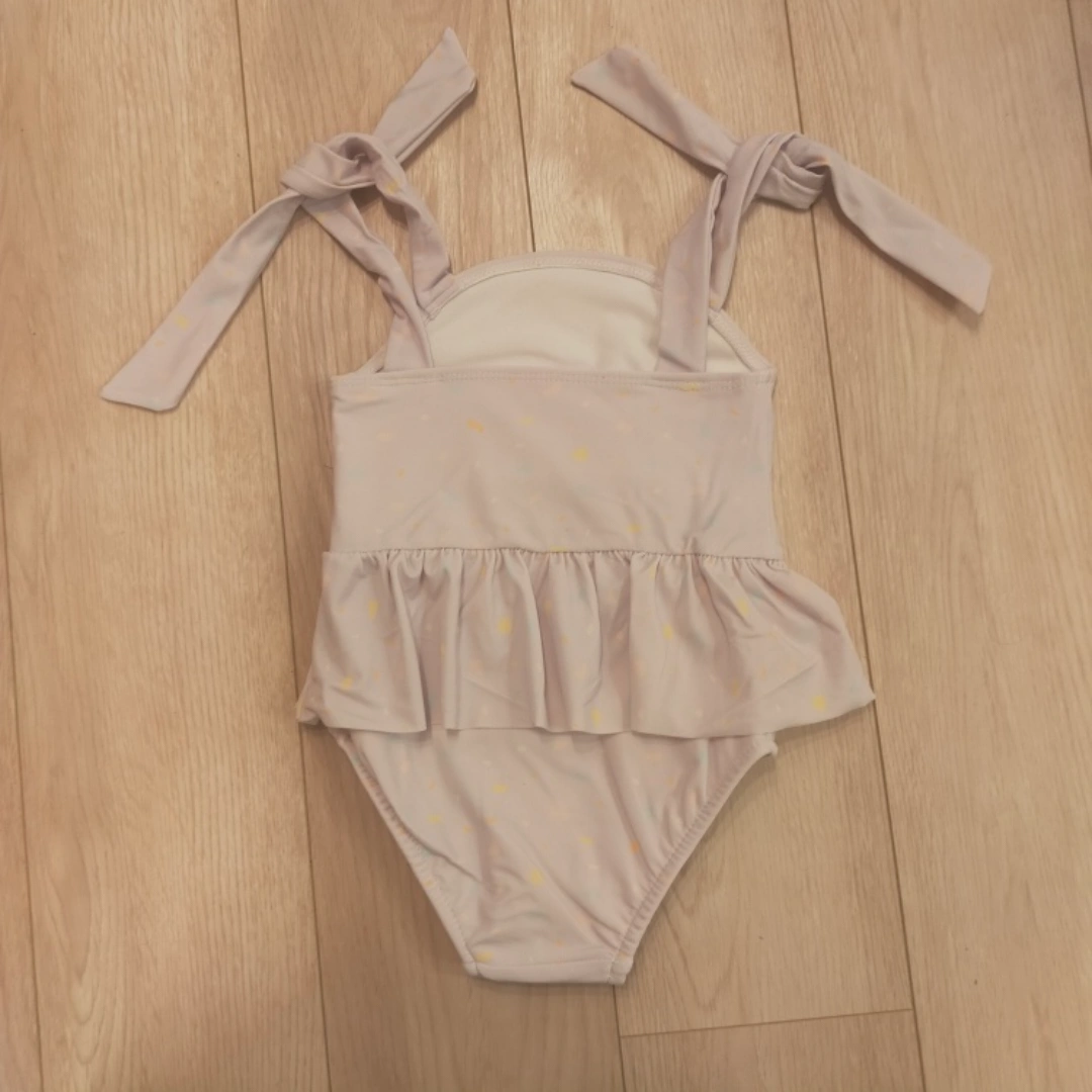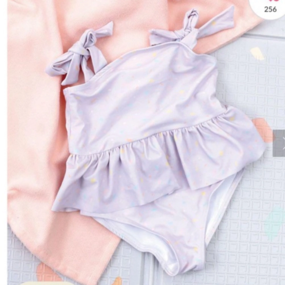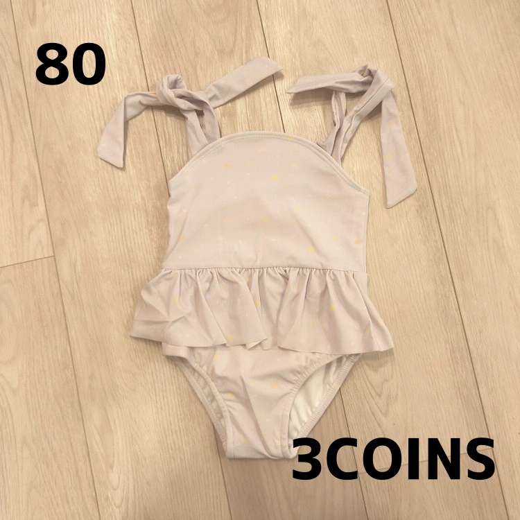 昨年スリコで購入しました。 薄い紫にカラフルで小さな柄が入っていて、フリルも付いているかわいい水着です(^^) 肩紐は結ぶタイプでお子様により調整ができます。 サイズを間違えて購入してしまいました。。 一度だけ試着をしかけて、足を入れたら全然入らず気がついた感じなので…ほぼ未使用です。 お安くしますのでどなたか使っていただけると嬉しいです(T_T)