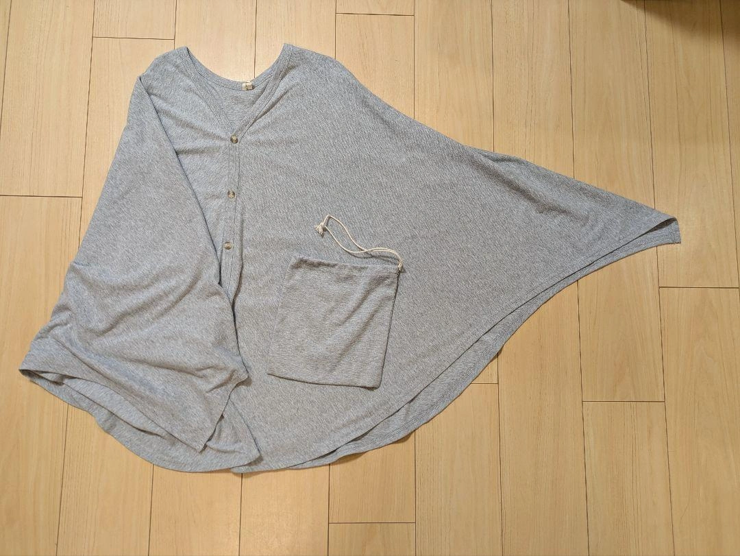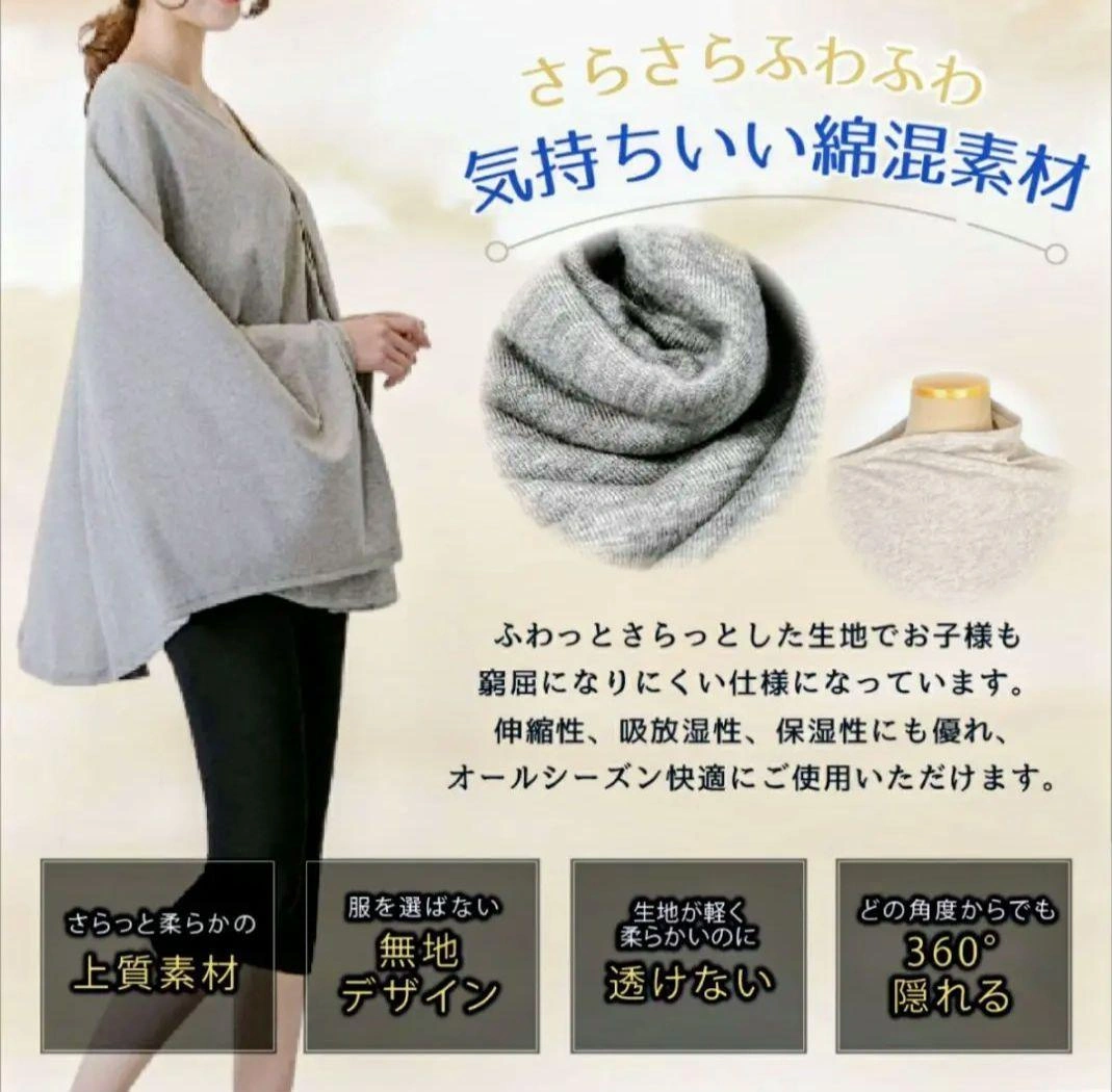 柔らかい綿混素材で360度隠れる4way授乳ケープです。 2,000円で購入後、外出先で1回使用しました。 ホームクリーニングして保管しておりました。 気になる点も特になく、美品です。 持ち歩き用に同じ色の袋がついています。 - モデル: 4way 授乳ケープ - 素材: 綿混素材 - サイズ: フリーサイズ (着丈約80cm) - 色: グレー - 特徴: 360度隠れるデザイン ご希望の方はお気軽にご連絡ください。