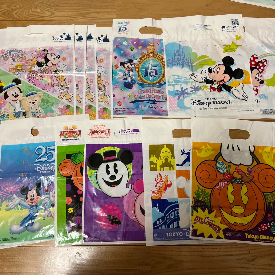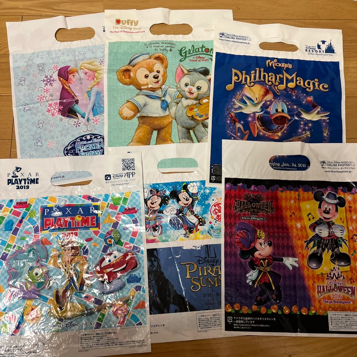 最終の価格とします。 ディズニーランド、ディズニーシーのショッパーです。 様々な年代、サイズが揃 っています。 たたんで保管していたため、折り線が付いてしまっています。 また、スレや折り線部分に小さな傷ができてしまっているものもあります。 ss 17枚 s 21枚 M 7枚 L 6枚 LL 2枚 計53枚セットです。 見落としている汚れがあるかもしれません。 また、経年劣化により色移りがある場合があります。 未使用品のものを出品しておりますが、確認漏れでお土産を入れていた使用品が含まれる場合がございます。 ご了承くださる方のみ、ご購入ください。