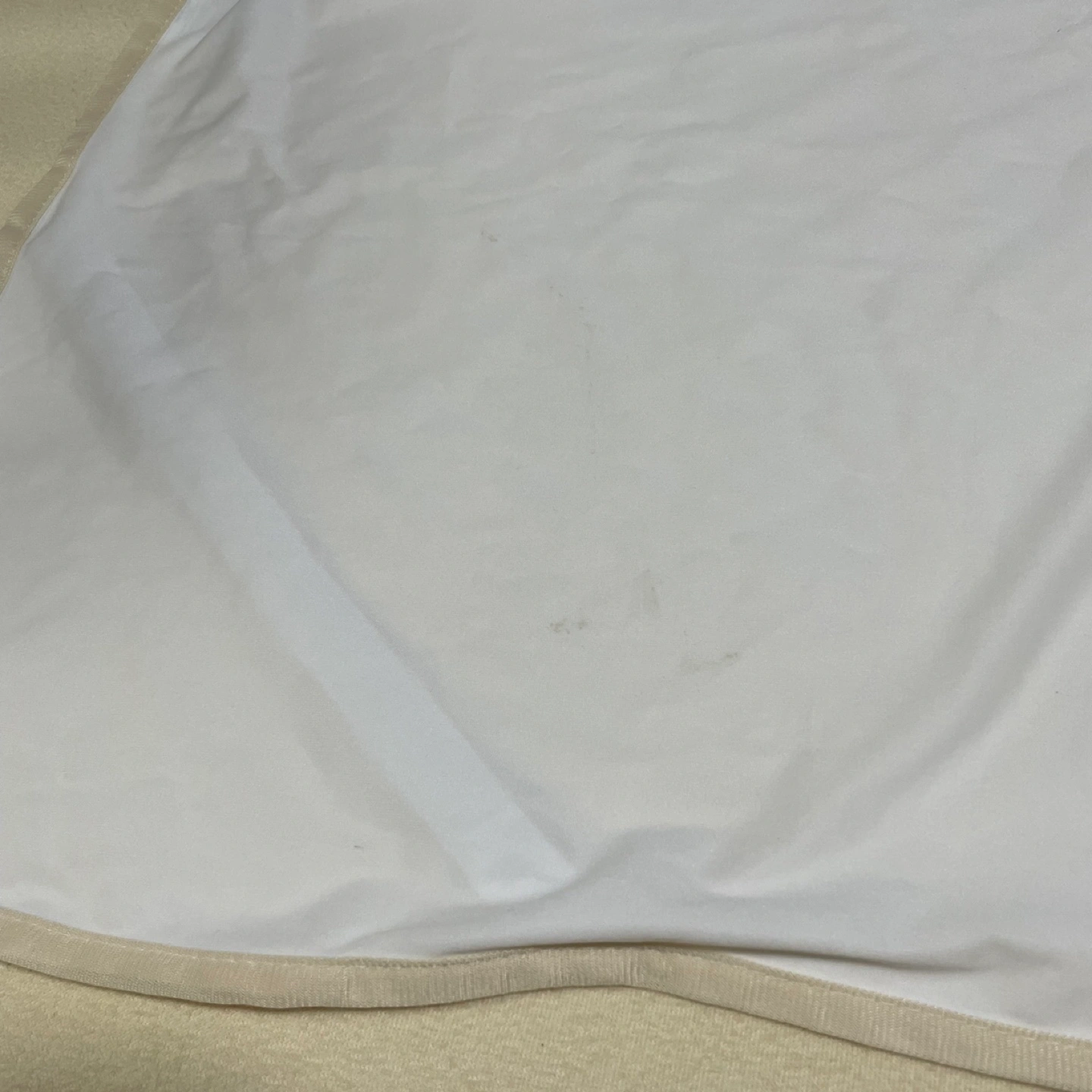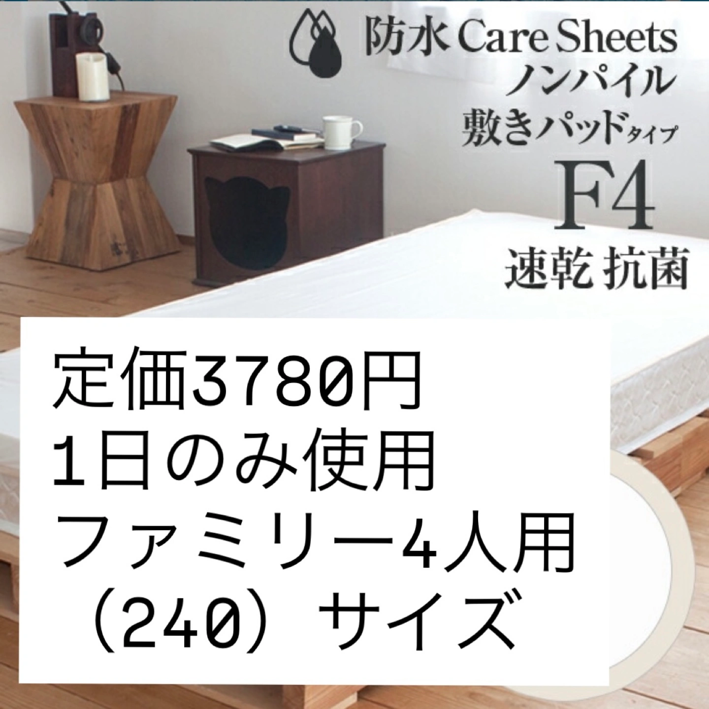 あたたかさ★1日のみ使用!定価3780円★ セミダブル + セミダブル サイズ ファミリーサイズ 240 速乾 防水シーツ 敷きパッド ボックスシーツ おねしょシーツ 介護シーツ 定価3780円 速乾仕様の防水シーツ 抗菌 乾燥機OK 敷きパッドタイプ サイズ ファミリー4人用サイズ(240) カラー ホワイトベージュ 6月25日に新品未使用で購入し、1日だけ使いました。 開封して速攻で娘が手にご飯をつけたまま布団に行ってしまい、角らへんに数カ所小さいですがご飯の汚れがついてしまい1度洗濯しています。。 セミダブルとセミダブルのベッドをつなげたベッドに使用目的で購入したのですが、 汚れる頻度が多いため、思いのほか使い勝手がわるいので1日のみの使用ですがお譲りできればと思います。。。 少しお安くしますので良かったらいかがですか。 角のご飯のところだけ若干シミとなっているためお写真載せます。 それ以外はとても綺麗な状態ですが 中古品かつ自宅保管となりますので、神経質な方や完璧を求める方は購入をご遠慮ください 中古品にご理解いただける方のみご購入をお願いします。 取りに来ていただける方限定でお願いします!