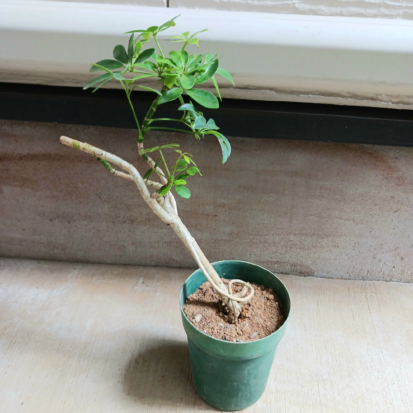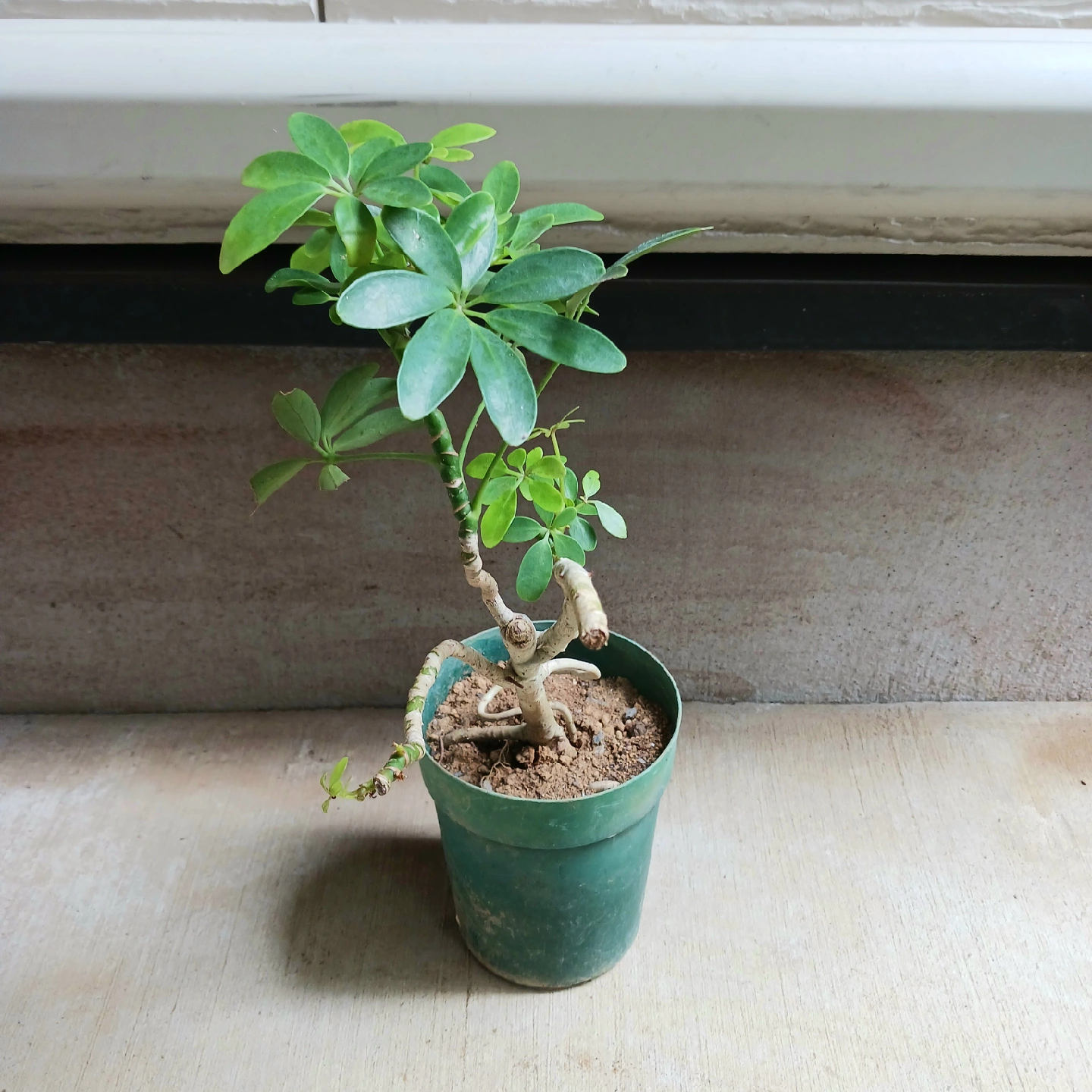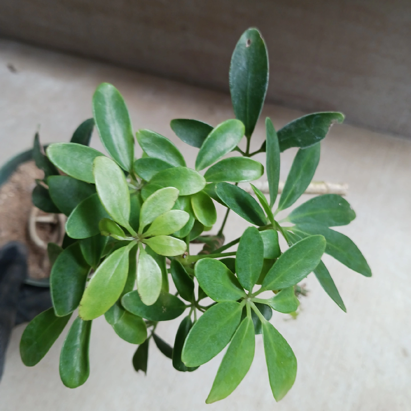 手のひらを広げたようなシェフレラ(ホンコンカポック)の葉をぎゅっと小さくしたコンパクタ 浅鉢に植えて盆栽風にしたり、お気に入りの鉢に入れると見映えがよくなります 《鉢サイズ》 4号鉢(直径12cm × 高さ14cm) 緑のプラ鉢 《植物サイズ(鉢込み)》 横幅:約22cm × 高さ:約41cm 《撮影日》 2025年10月9日 現在の状態を確認したい場合は、購入前にお知らせください。画像追加いたします 《置き場所》 ・風通しのよい室内または屋外の明るい場所 《水やり》 ・土の中まで乾いてからたっぷりと与えてください ・冬場に置く場所の温度が15℃以下になる場合は、水やり回数を減らし、乾燥気味に管理します