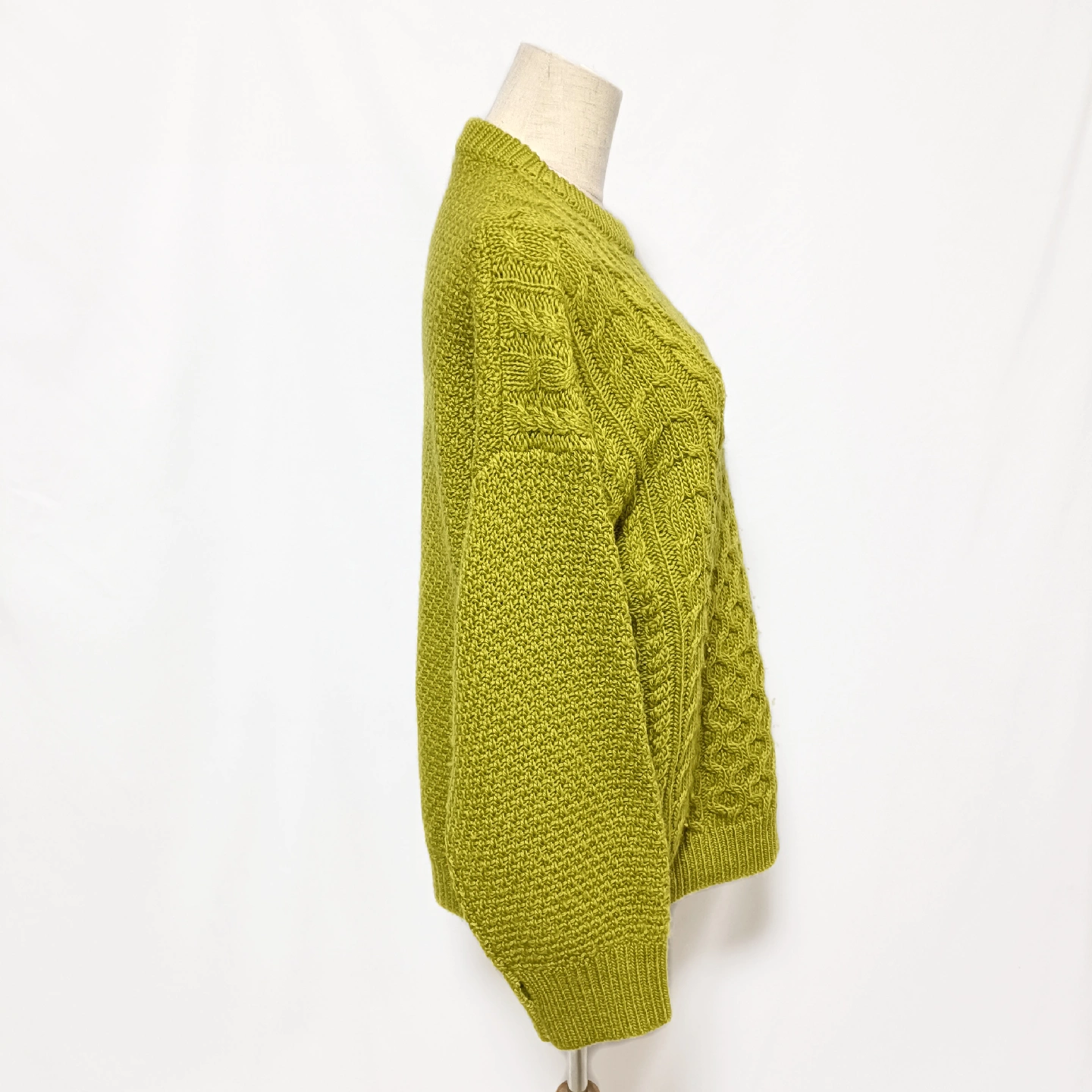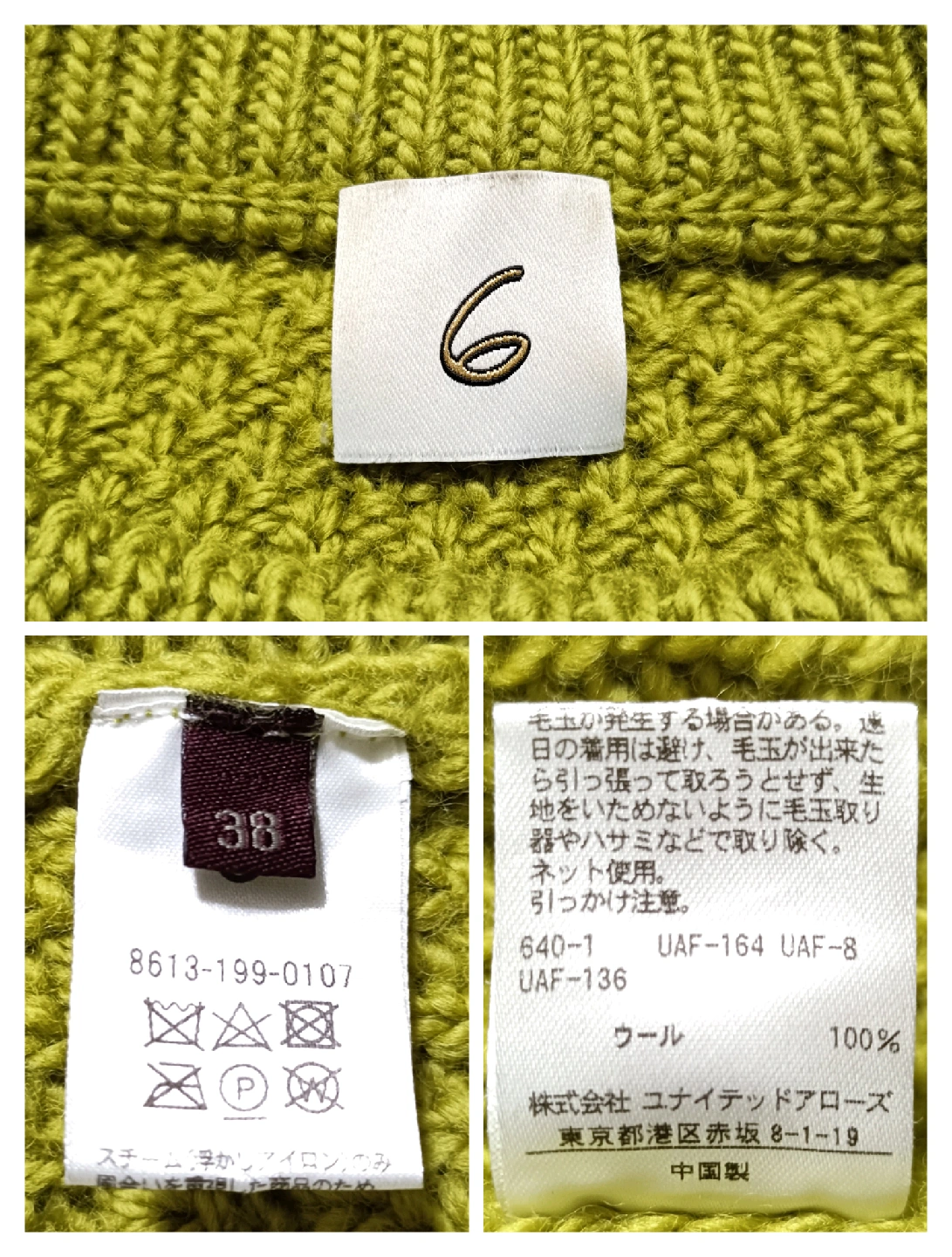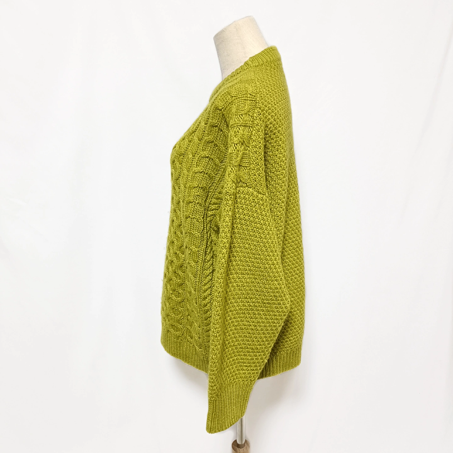 ご覧いただきありがとうございます! 6(ROKU) BEAUTY&YOUTH UNITED ARROWSのボリューム感のあるケーブルニットです。 表情豊かなアラン編み(ケーブル編み)が特徴で、ざっくりとした編み地が着こなしに温もりと奥行きを与えてくれます。 肩の落ちたゆったりとしたオーバーサイズシルエットで、リラックス感のある大人のカジュアルスタイルが完成します。 #joymaxお得なプロフへ #ゆうの古着屋さん_レディーストップス □商品名□ 6(ROKU) ロク ケーブルニット ウール100% ライムグリーン 38 □ブランド□ 6 ロク □表記サイズ□ 38 □実寸サイズ(cm) □ 着丈:67 肩幅:68 身幅:60 袖丈:47 ※実寸につきまして多少の誤差はご了承ください。 ※表記サイズだけではなく実寸のサイズをご確認ください。 □カラー□ ライムグリーン/グリーン □素材□ ウール100% □コンディション□ 目立った汚れやダメージなど特にございません。 ※汚れはできる限り写真にて掲載しております。まずは画像をご確認ください。 出品一覧→ #joymaxお得なプロフへ どうぞよろしくお願い致します。 □商品管理番号□ II3-W-5429