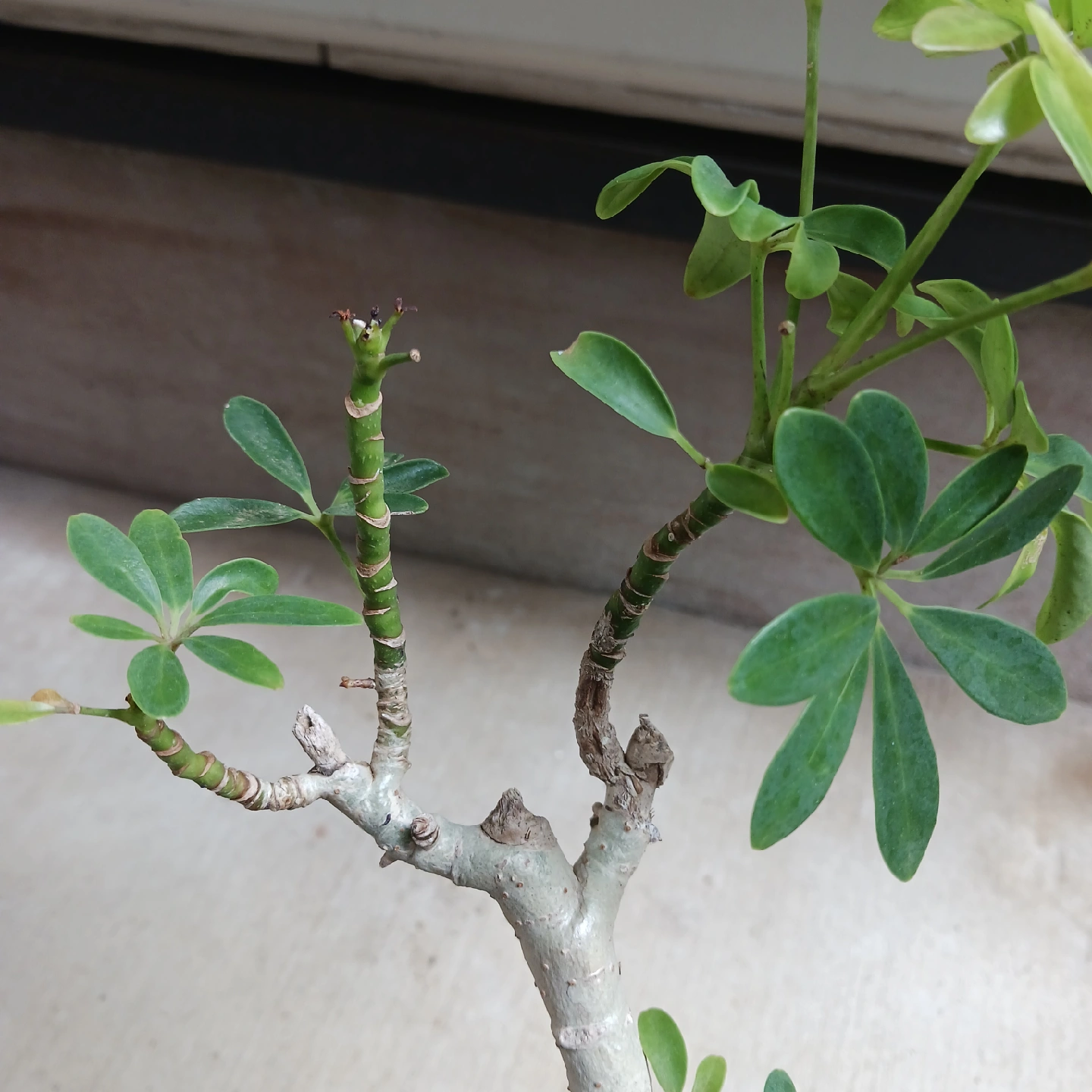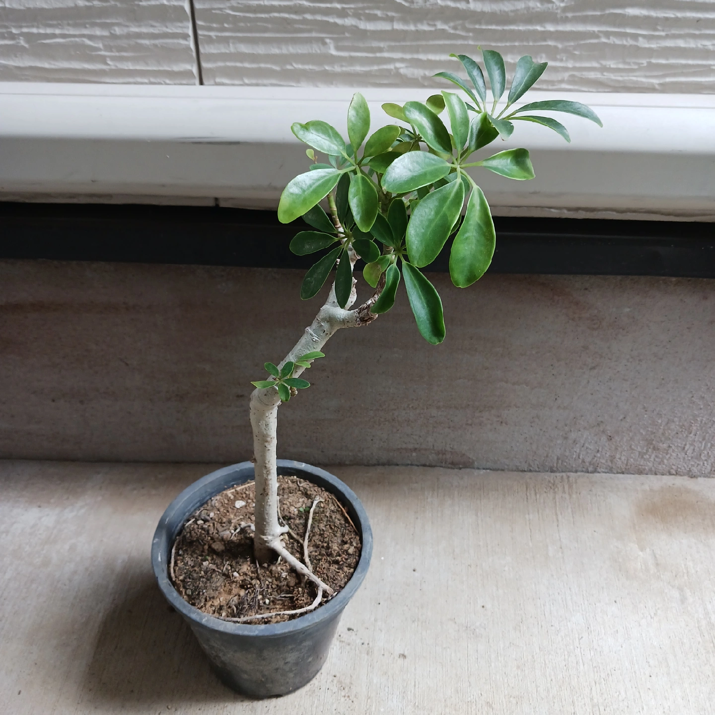 あたたかさ手のひらを広げたようなシェフレラ(ホンコンカポック)の葉をぎゅっと小さくしたコンパクタ 浅鉢に植えて盆栽風にしたり、お気に入りの鉢に入れると見映えがよくなります 鉢底から太い根が出ているため置くと少し傾きます 《鉢サイズ》 5号鉢(直径15cm × 高さ13cm) 黒のプラ鉢 《植物サイズ(鉢込み)》 横幅:約cm × 高さ:約cm 《撮影日》 2025年10月9日 現在の状態を確認したい場合は、購入前にお知らせください。画像追加いたします 《置き場所》 ・風通しのよい室内または屋外の明るい場所 《水やり》 ・土の中まで乾いてからたっぷりと与えてください ・冬場に置く場所の温 度が15℃以下になる場合は、水やり回数を減らし、乾燥気味に管理します
