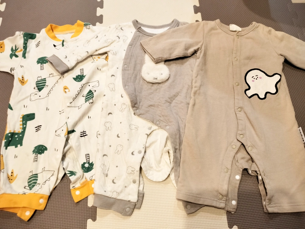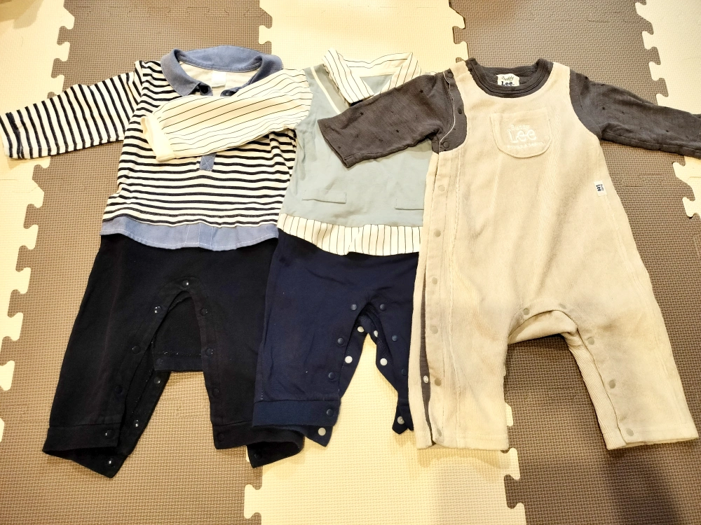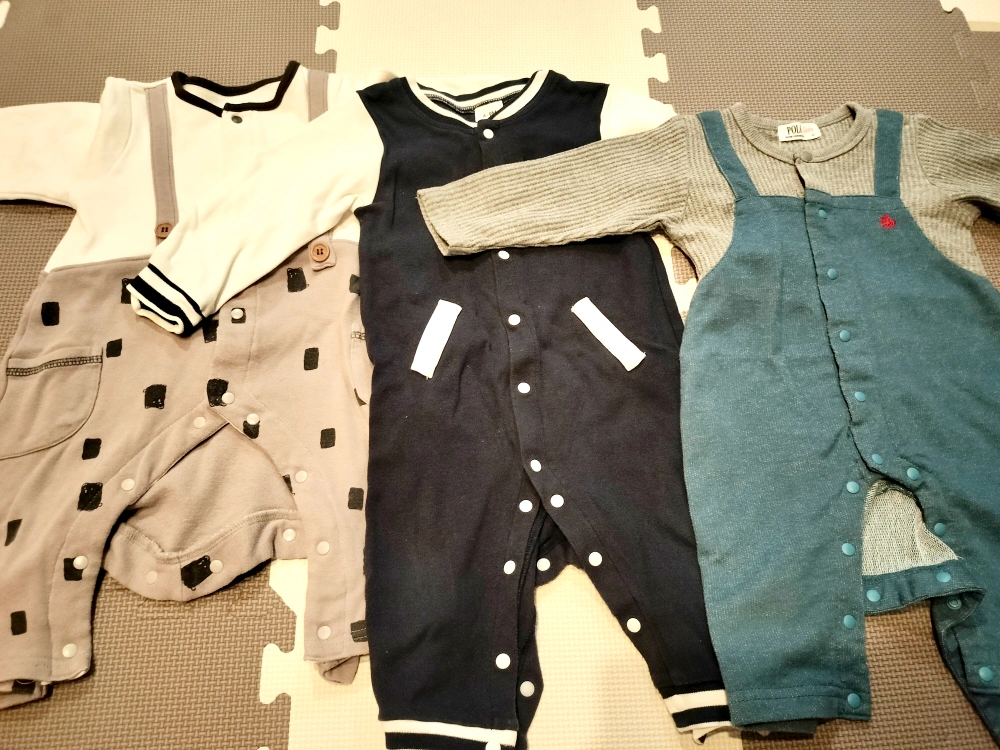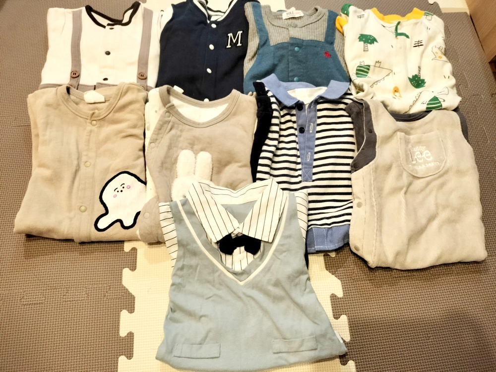 秋冬にぴったりのロンパースセットです。 洗いがえにいかがでしょうか? 6-9Mのものもございますが、だいたい70-80サイズのものと同じくらいの大きさです。 中古で買った、新品で購入しワンシーズンのみの着用したもののミックスとなりますが、概ね綺麗だと思います。 バースデーや西松屋、ユニクロで買いました。晴れ着用のロンパースもございます。 矢向駅近くに住んでおりますので、武蔵小杉駅、矢向駅、島忠ホームズなどで取引可能です。ご相談ください。