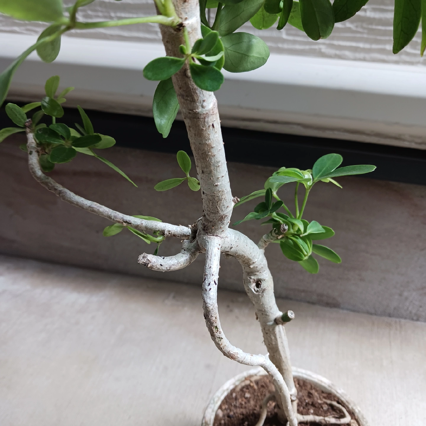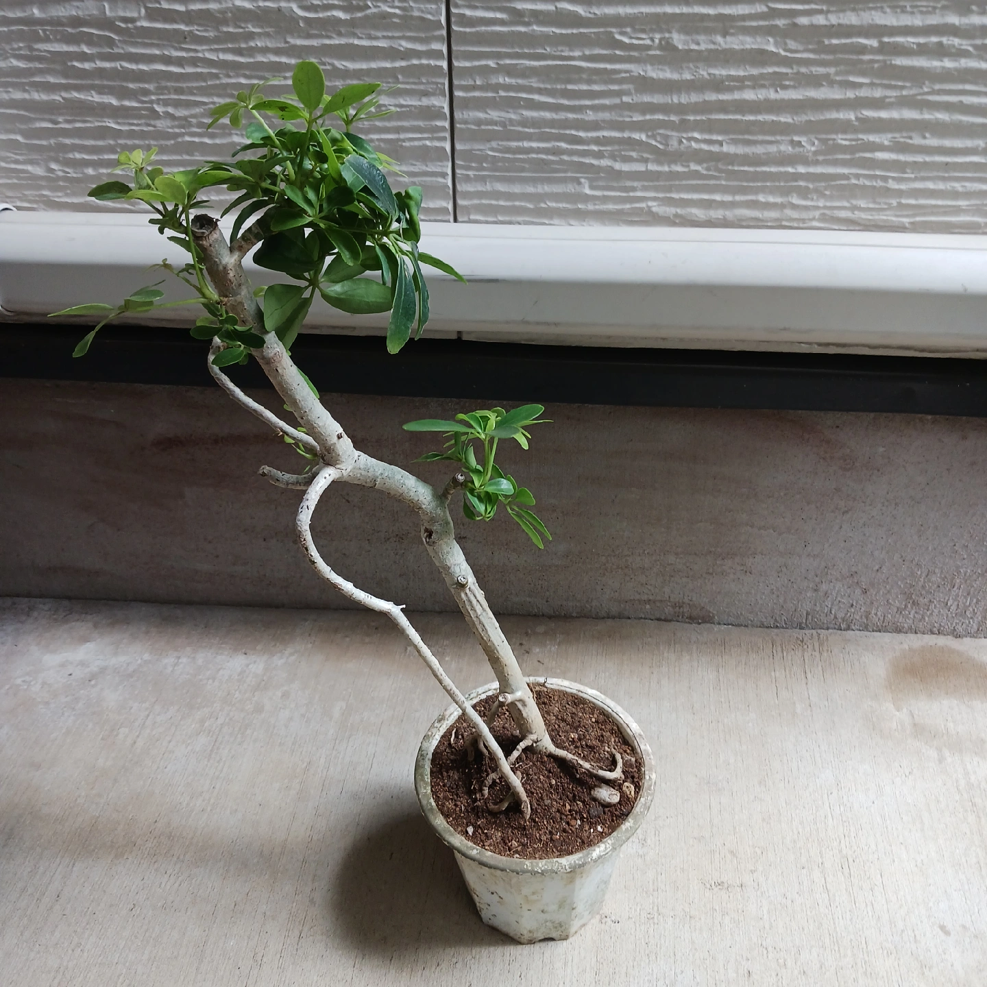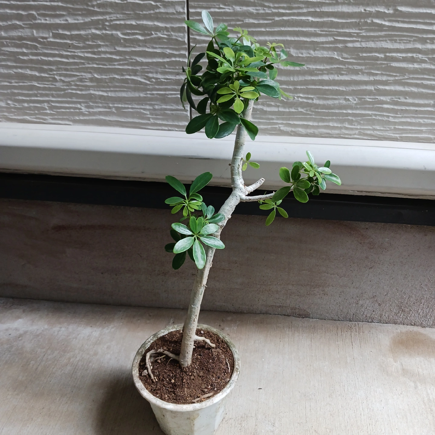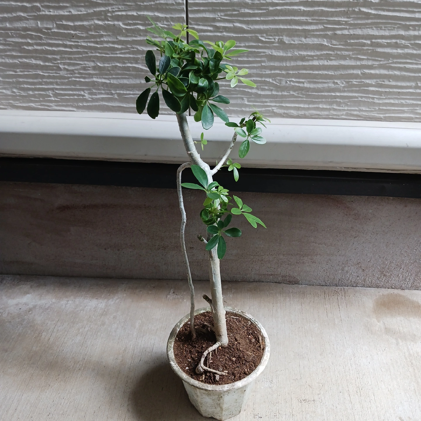 あたたかさ手のひらを広げたようなシェフレラ(ホンコンカポック)の葉をぎゅっと小さくしたコンパクタ 浅鉢 に植えて盆栽風にしたり、お気に入りの鉢に入れると見映えがよくなります 《鉢サイズ》 5号鉢(直径15cm × 高さ13cm) 白のプラ鉢 古鉢 《植物サイズ(鉢込み)》 横幅:約26cm × 高さ:約57cm 《撮影日》 2025年10月9日 現在の状態を確認したい場合は、購入前にお知らせください。画像追加いたします 《置き場所》 ・風通しのよい室内または屋外の明るい場所 《水やり》 ・土の中まで乾いてからたっぷりと与えてください ・冬場に置く場所の温度が15℃以下になる場合は、水やり回数を減らし、乾燥気味に管理します