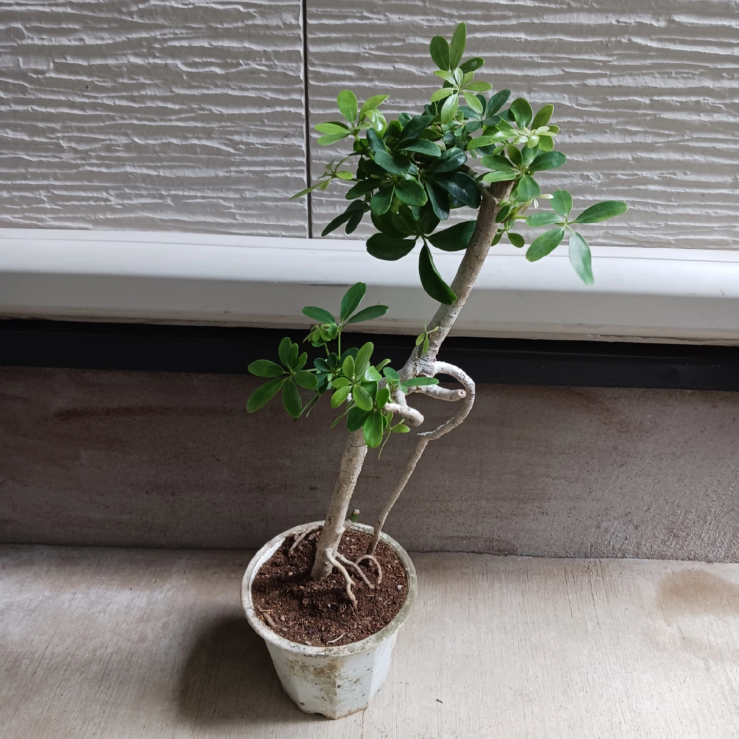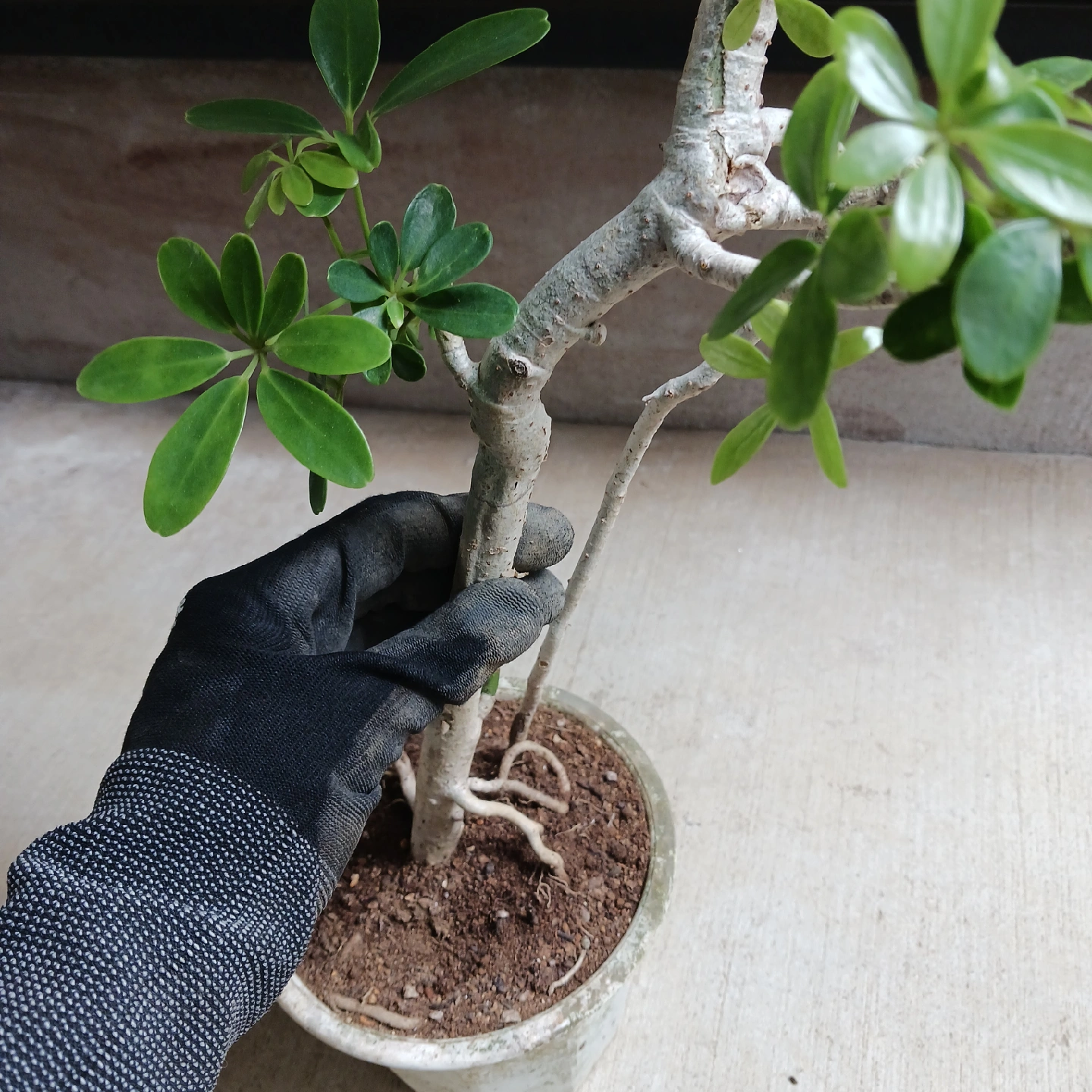 手のひらを広げたようなシェフレラ(ホンコンカポック)の葉をぎゅっと小さくしたコンパクタ 浅鉢に植えて盆栽風にしたり、お気に入りの鉢に入れると見映えがよくなります 《鉢サイズ》 5号鉢(直径15cm × 高さ13cm) 白のプラ鉢 古鉢 《植物サイズ(鉢込み)》 横幅:約26cm × 高さ:約57cm 《撮影日》 2025年10月9日 現在の状態を確認したい場合は、購入前にお知らせください。画像追加いたします 《置き場所》 ・風通しのよい室内または屋外の明るい場所 《水やり》 ・土の中まで乾いてからたっぷりと与えてください ・冬場に置く場所の温度が15℃以下になる場合は、水やり回数を減らし、乾燥気味に管理します
