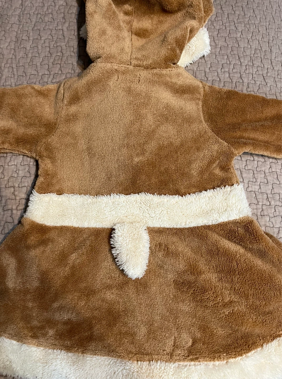 クリスマスのトナカイのキッズ用コスチュームです ・色:茶色、クリーム色 ・サイズ:90 ・キッズ用 ・ふわふわした素材 ・トナカイの耳付きフード 中古品であることご了承ください