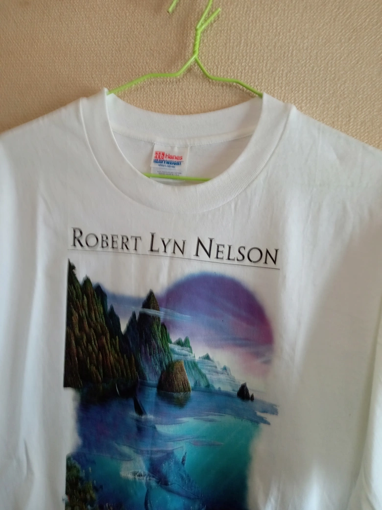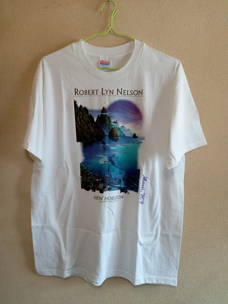 【重要】プロフは必ずお読み願います 90s 美術家 ロバートリンネルソン Tシャツ / 90年代の貴重な逸品となります、 ハワイ諸 島のマウイ島での購入品となります タンスから出したので新品のタタミシワはぁ 付いてますが【新品未使用】デッドストック サイズは身丈73㌢身幅52㌢袖丈22㌢ 柄・デザイン...プリント(ロゴなど) カラー...ホワイト ◆1955年に、アメリカ・カリフォルニアで生まれた、1979年に発表した、自身がダイビング中に目にする光景を分かち合うべく生み出された、水面の上と下の世界、水中と地上を同時に描いた作品「Two Worlds」等の代表作、第43代アメリカ合衆国大統領「George Walker Bush(ジョージ・W・ブッシュ)」氏をはじめ、ハリウッド俳優・映画関係者、著名人等にコレクターが多いことでも知られる、マリンアートの先駆者〔Robert Lyn Nelson(ロバート・リン・ネルソン)〕氏の作品がTシャツ表面に施された、アメリカ製〔オールド・Tシャツ〕になります