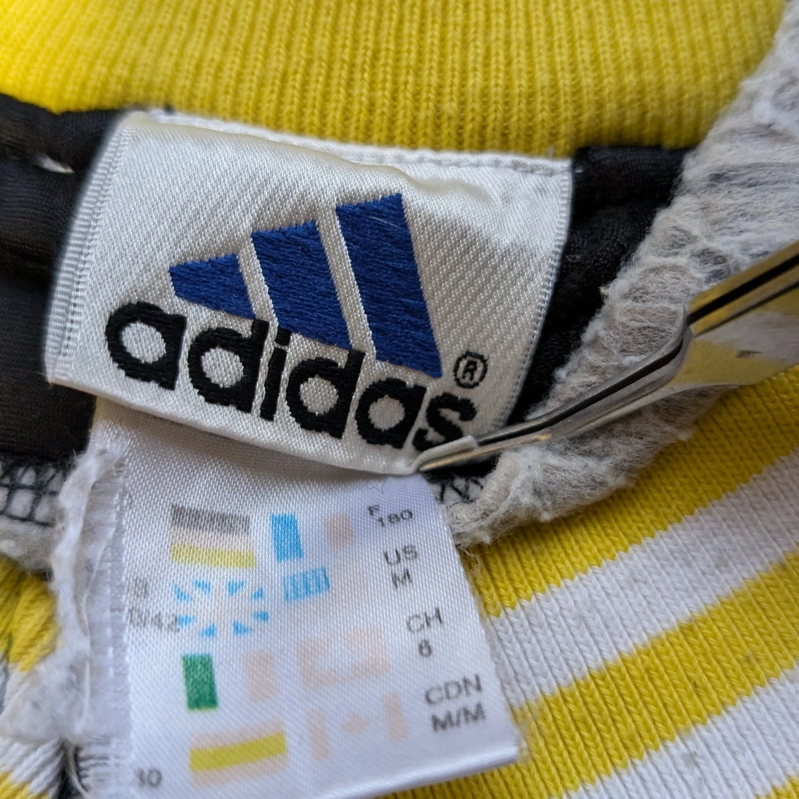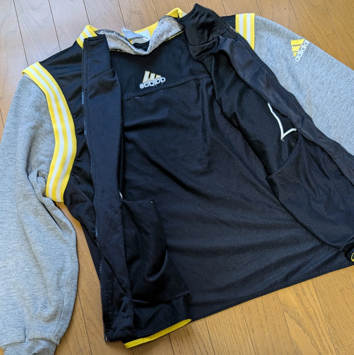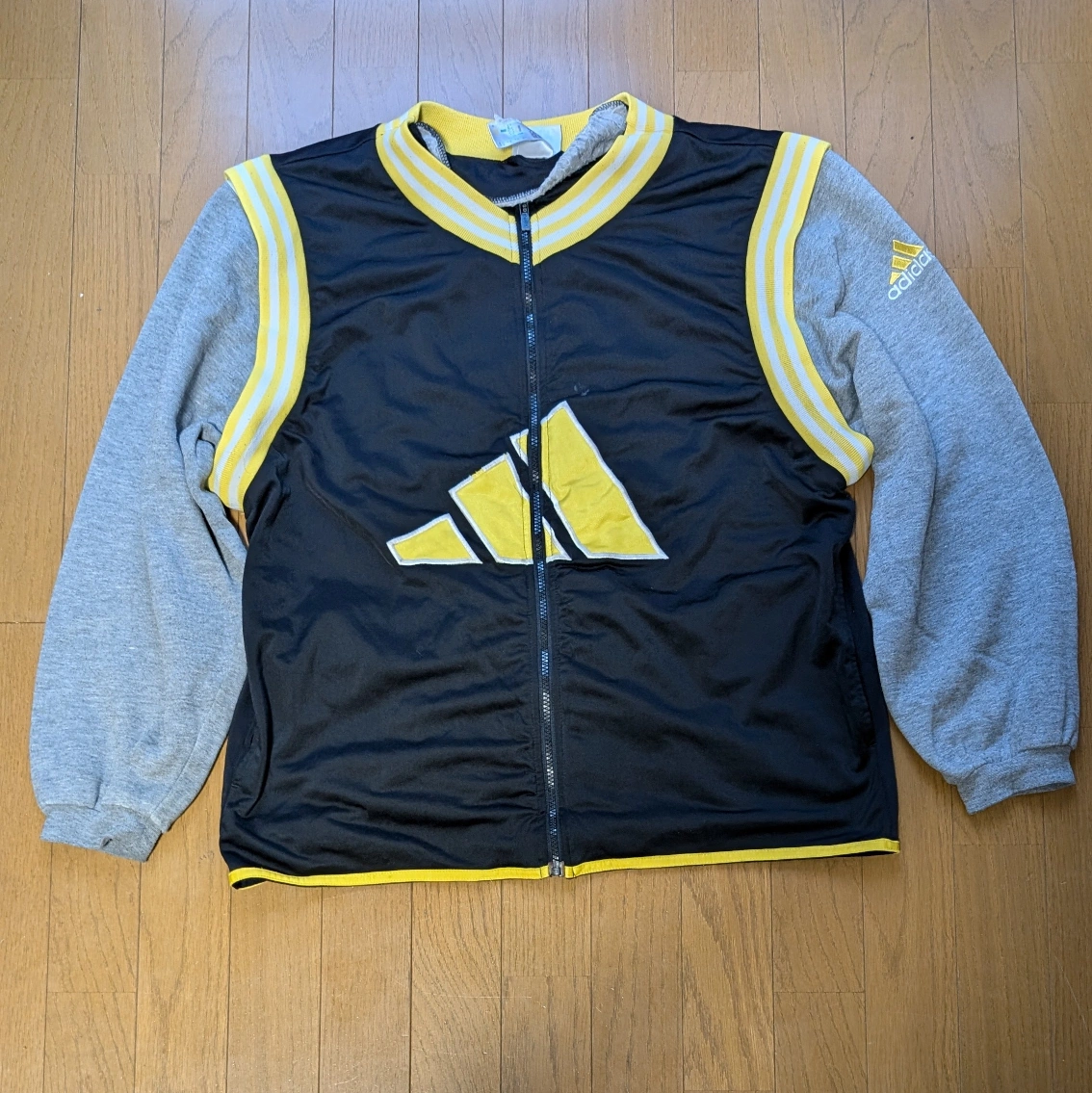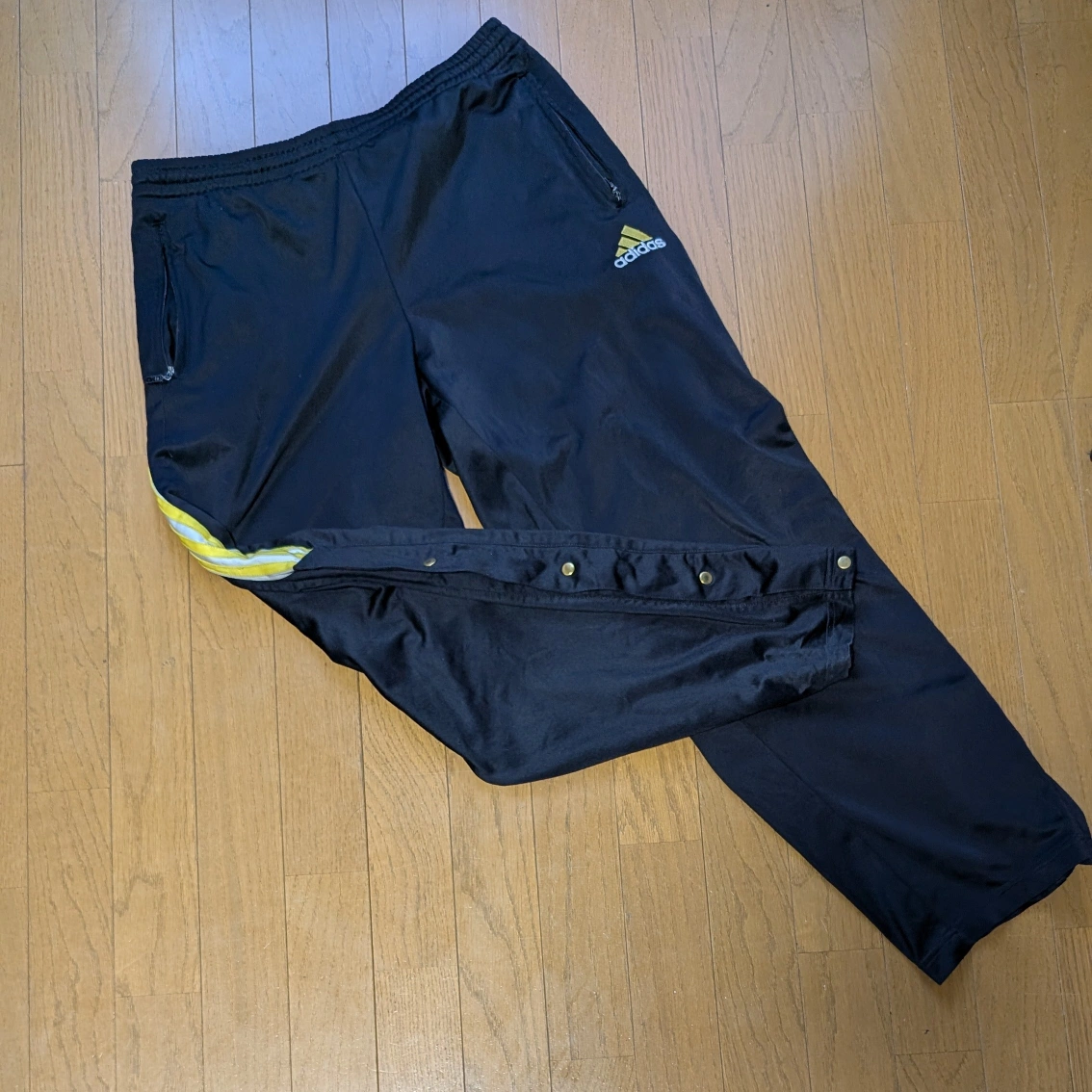 下北沢の古着屋で購入した90年代アディダスのセットアップトラックジャケットになります。 配色や大きめのサイズ感など正に90'sを感じる逸品です。 袖はジッパーで取り外し可能、パンツはボタンで止めるスリットです。 経年劣化によるダメージとウエストを摘んで縫って調整しております。 揃いではまず手に入らないアイテムかと思います。 上 肩幅...51cm 身幅...53cm 袖丈...59cm 着丈...62cm 下 ウエスト…41cm 総丈…94cm 股下…73cm 股上…26cm 袖...長袖 丈...ロング 性別...メンズ