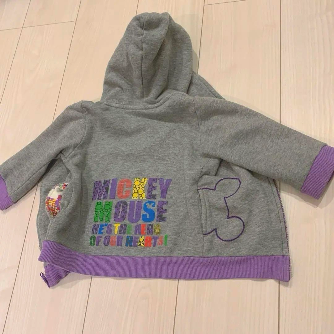 【希少品】 商品名:Mickey Mouse柄ジップアップパーカー ブランド:DISNEY(ディズニー/タキヒヨー) サイズ:95㎝ カラー:グレー系 【特徴】 腰の部分にミッキーマウスを模った刺繍が縫われています。フードの裏生地とポケットの内側の部分はドット柄のミッキーマウス生地になっています。 生地は薄手でやわらかい綿100%のコットン系の手触りです。羽織ってきさせる事が出来るので春先まで使用できます。ディズニーランドに行く際にもいかがですか? 【状態】 多少使用感はありますが、傷や汚れなく状態良いです。 素材:綿100% ※素人・平置き採寸ですので、多少の誤差はご了承ください。 ※商品の全体的なコンディション・細かなダメージは備考欄と画像を参照してください。 ◆状態・画像・採寸について ※出品商品は1点物の中古品がほとんどの為、商品状態も様々です。 可能な限り細かく状態を記載してお りますが、記載しきれない場合もございますので、ご不明な点がございましたらご購入前にお問い合わせください。 ※実物と画像で色が異なって見える場合がございますのでご了承ください。 また、お使いのパソコンモニター・スマホの色調でも違って見える場合もございますのでご理解のほど、宜しくお願いいたします。