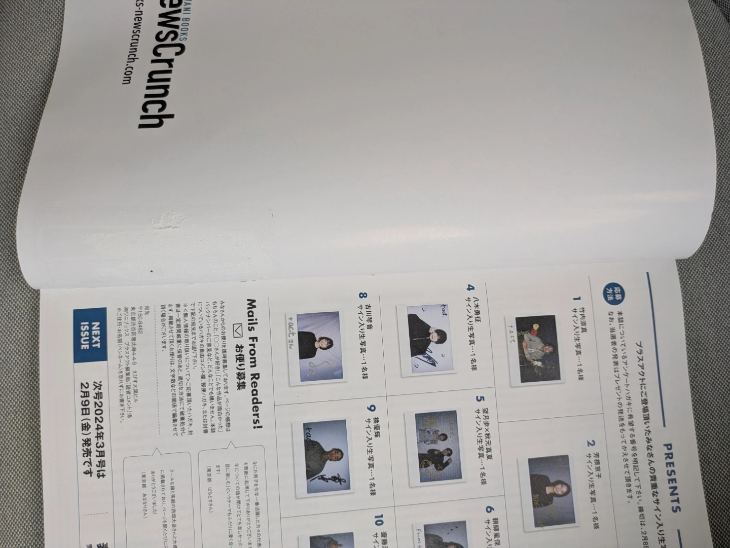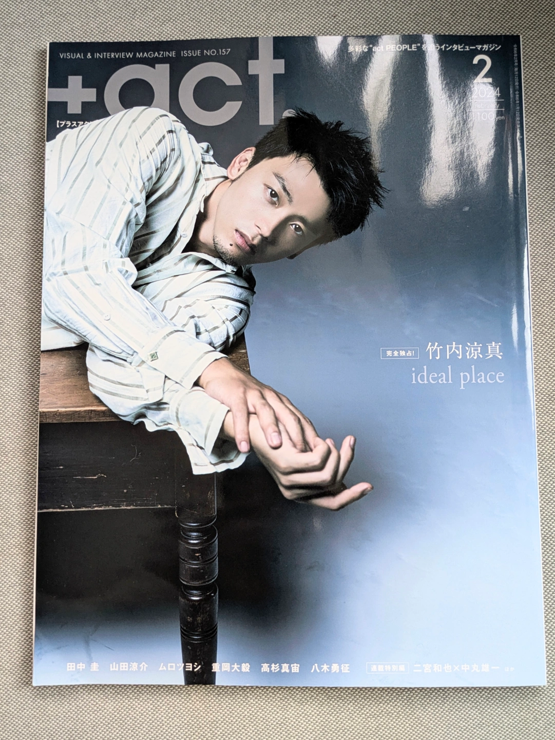 +act 2024年2月号、特集は竹内涼真、魅力的なインタビューとビジュアルを収録。 - タイトル: +act 2024年2月号 【表紙・巻頭特集】 竹内涼真 【豪華ラインナップ】 田中圭/山田涼介/ムロツヨシ/重岡大毅/高杉真宙/望月歩×秋元真夏/橋本愛/鞘師里保/兵頭功海×新原泰佑/古川琴音/橘優輝/齋藤潤/八村倫太郎/二宮和也、中丸雄一 PLAY BACK act.松坂桃李 【act.FACE】芳根京子 【PLAY act.】迫田孝也 【芸人通信】ヒューマン中村 【Takarazuka Actors Spirit】風間柚乃 【MONTHLY TOPICS】『KinKi Kids Concert 2023-2024 ~Promise Place~』 【大好評豪華連載陣】 千葉雄大 高杉真宙 水上恒司 福田雄一 中丸雄一 ご覧いただきありがとうございます。 ディスプレイケースに入れて大切に保管してきましたが、 転居に伴い出品します。 最後のページのハガキは付属しません。 最後の画像部分に剥がれがありますが、何もないページなので支障はないかと思います。