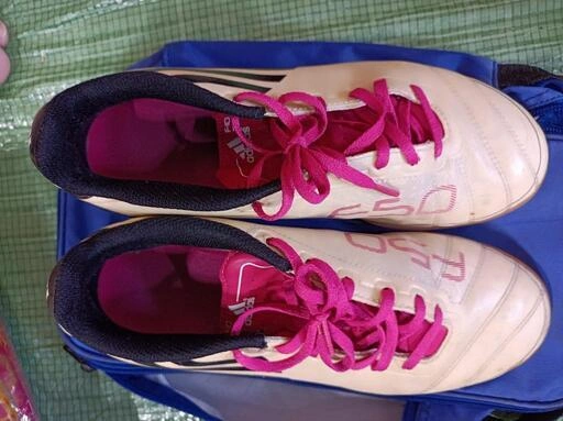 adidasのフットサルシューズ、24.5センチ、室内用です。 クリームとピンクのコンビネーションで、フラットソールが特徴です。 色が黄色っぽくなってしまっています。 ブランド: adidas カラー: クリーム/ピンク ソールタイプ: フラットソール モデル名: 50 サイズ 24.5センチ ご覧いただきありがとうございます。 セブンイレブン横浜市和泉町三ツ俣店でのお取引になります。 ご希望の方はお気軽にご連絡ください。