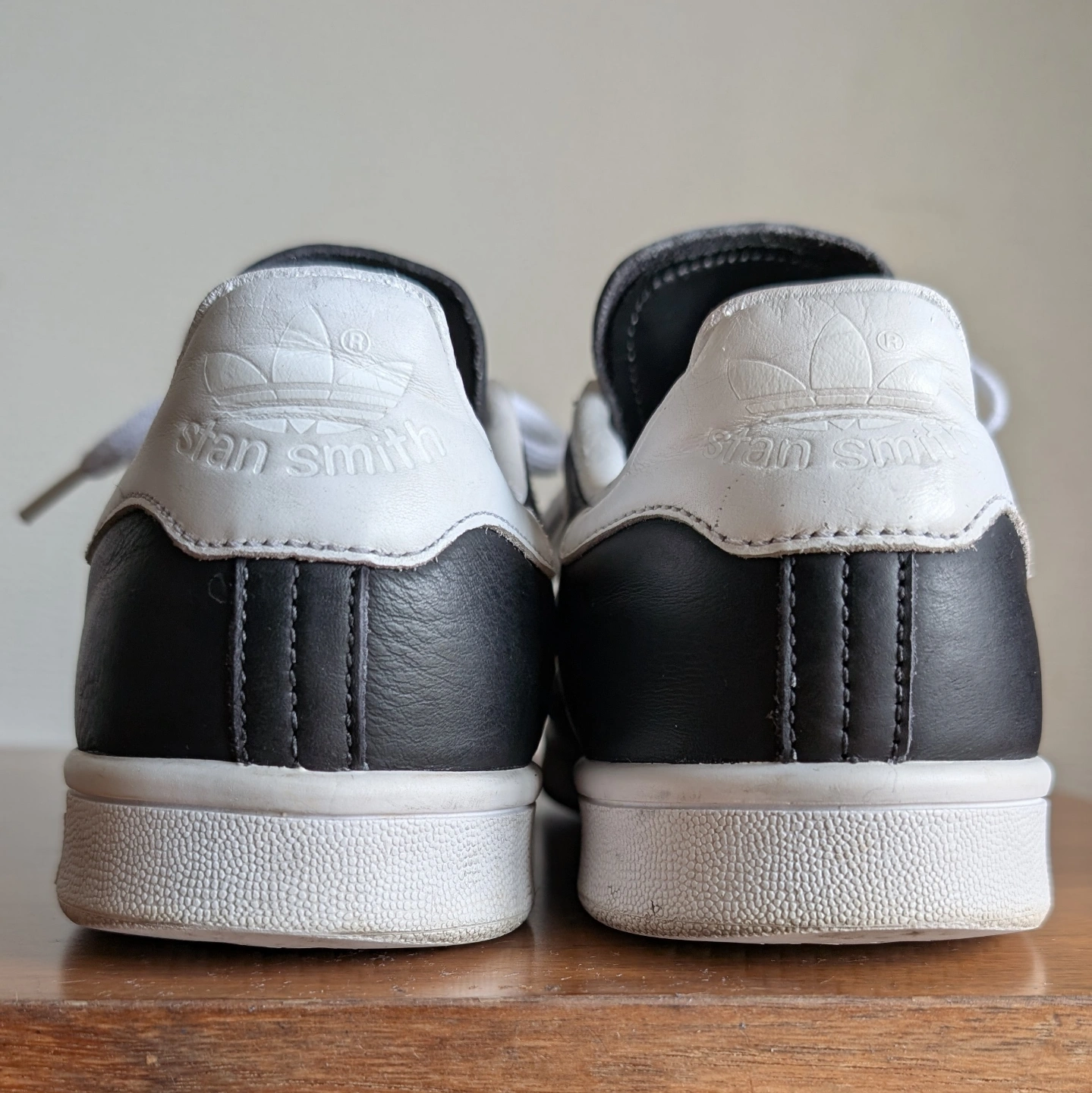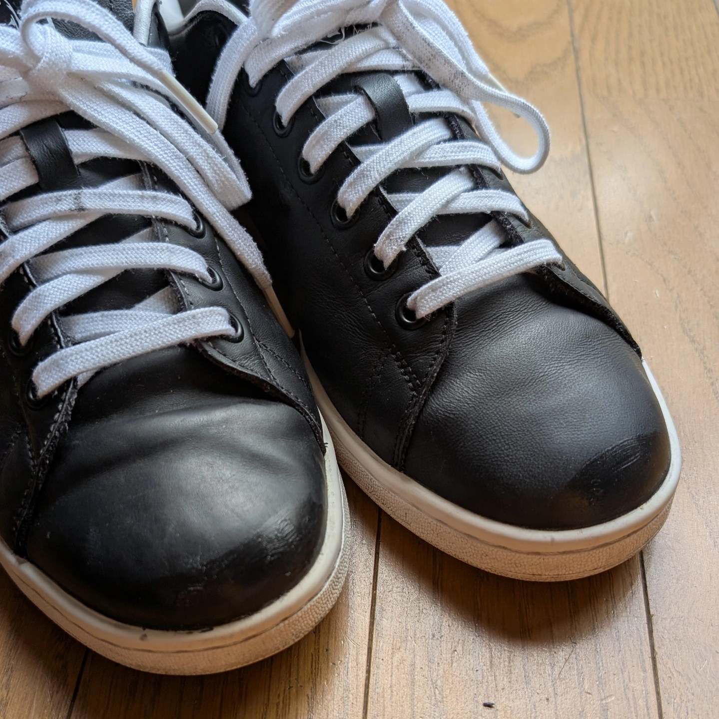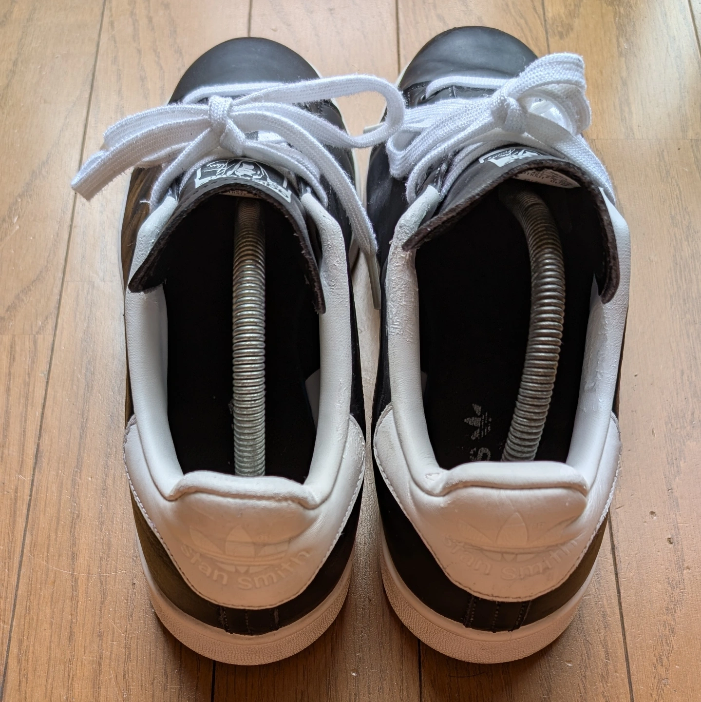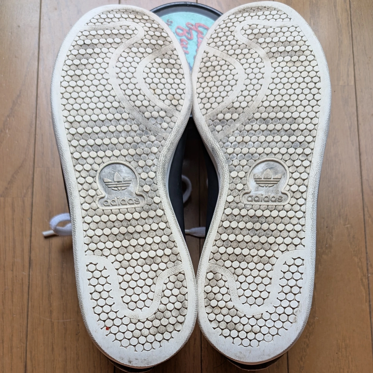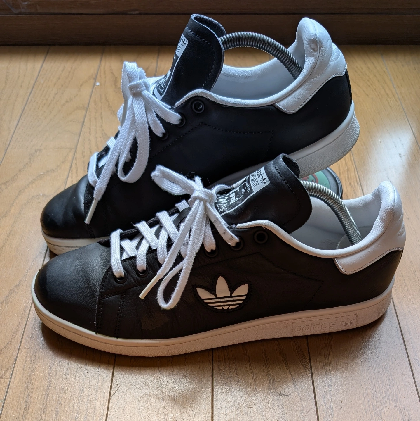 以前購入したアディダスのスタンスミス(黒)です、クローゼット整理のため出品します。 洗濯&傷、スレなど補修済です。 ◉スタンスミス / STAN SMITH ◉品番: BD7452 ◉サイズ :27CM ◉日本国内正規品 【商品の特徴】 コート系シューズを代表する、ミニマルなデザインのスタンスミス。クラシックなシルエットに、控えめなひねりを加えて仕上げている。このバージョンは、スタンダートのパンチング加工のスリーストライプスに代わって、サイドにカットアウトのトレフォイルをあしらっている。シンプルさが際立つ、滑らかなレザーアッパーを採用。 ・レギュラーフィット ・シューレースクロージャー ・レザーアッパー ・ラバーカップソール ・快適な履き心地と高い機能性を誇るOrthoLite®ソックライナー ・ソフトな履き心地 ・商品番号:BD7452 ・色:コアブラック/ランニングホワイト/コアブラック ・生産国:India メインカラー...ブラック モデル名...STANSMITH
