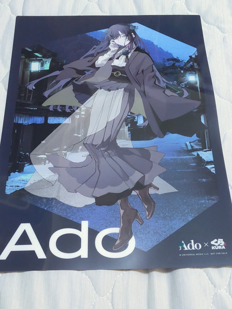 Ado くら寿司コラボ A3クリアポスター 店頭でもらったときからカバー等はありませんでした。 適当なビニール袋に入れて保管しておりますが、 保管に伴う傷やスレ等がある可能性もございますので ご理解ください。