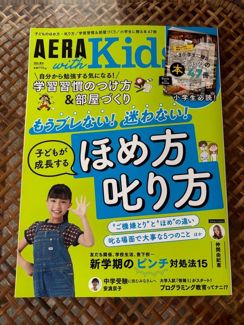 子どもの成長に役立つほめ方と叱り方を特集した児童向け雑誌です。 - タイトル: AERA with Kids - 特集内容: 子どもが成長するほめ方・叱り方 - リゾート情報: 全国各地のリゾート情報を掲載 - 対象年齢: 児童向け ご希望の方はお気軽にご連絡ください。