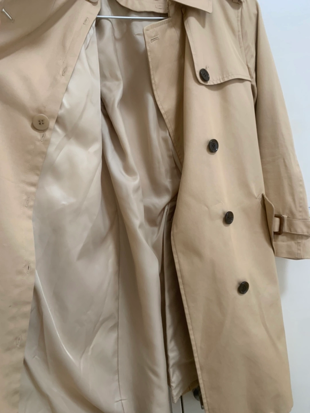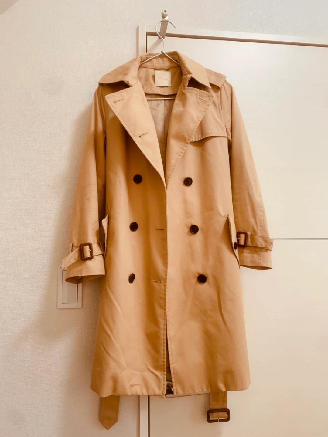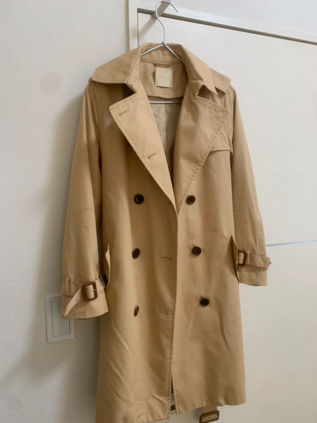 数年前に購入し、綺麗めの時にのみ使用し、 自宅保管していた、 アクアガールのトレンチコートです。 サイズ36,S サイズ 温度調整により外せるライナー付き。 他のコートやカーディガンの下にも羽織れます♪ とても綺麗な、オレンジよりのキャメル色。 (ラスト3枚が正面変えてみましたが近いかな) 多少の雨も弾くようなしっかりした布地です。 購入時3万円弱 ※右腕に鉛筆のような汚れが少しあります。 それ以外は、購入時と変わらない為、気にならない方に。 試着可能 サイズが合えばとてもおすすめです。