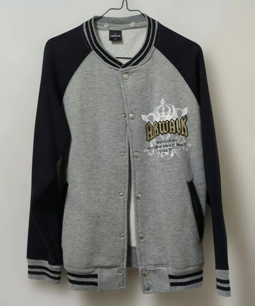 AIRWALK エアウォーク (M) ロゴ刺繍 プリント パーカー - ブランド: AIRWALK - サイズ: M - カラー: グレー/ブラック - デザイン: プリント入り - スタイル: スタジャン 毛玉あります… フードありません… 中古品にご理解のある方のみよろしくお願いいたします。 ご希望の方はお気軽にご連絡ください。