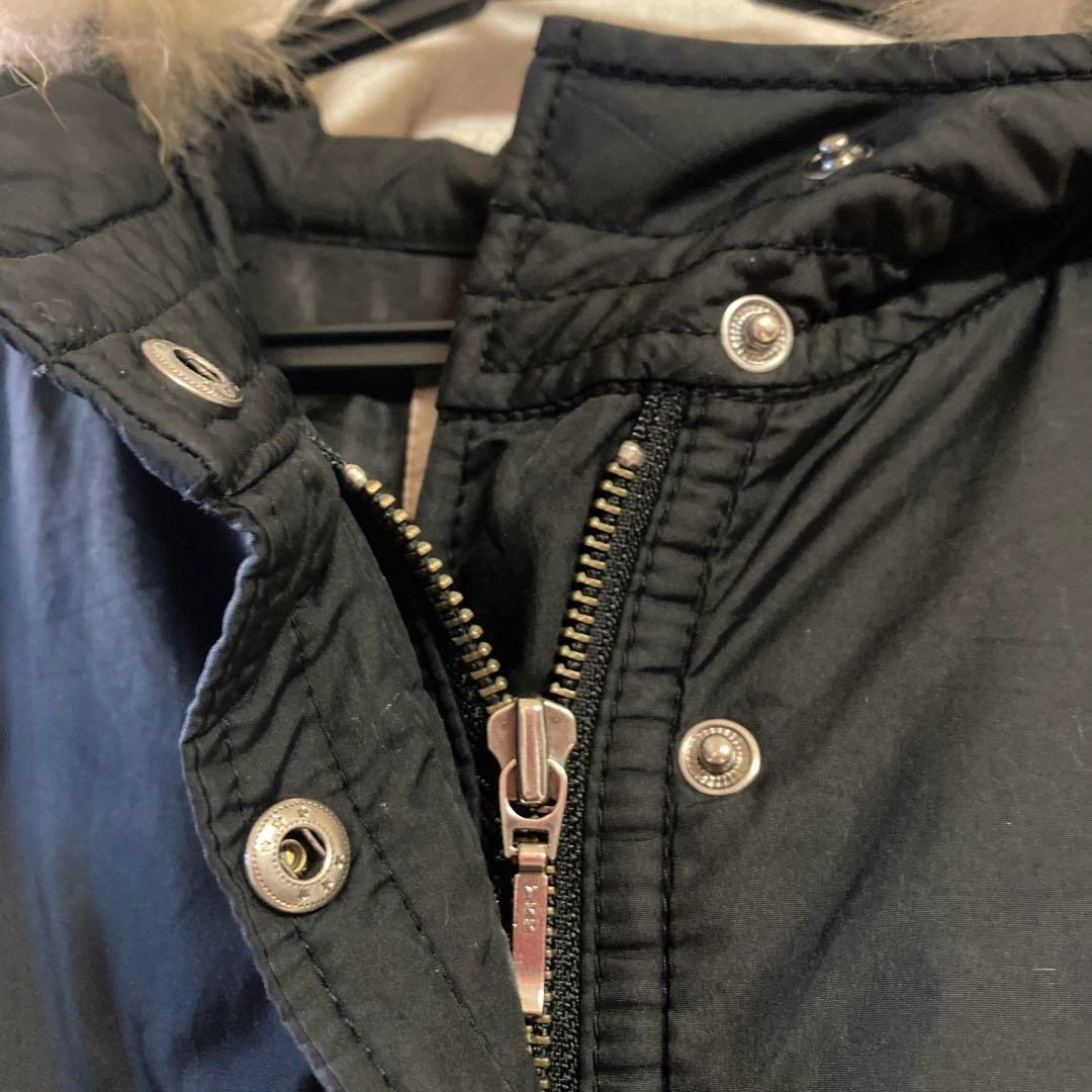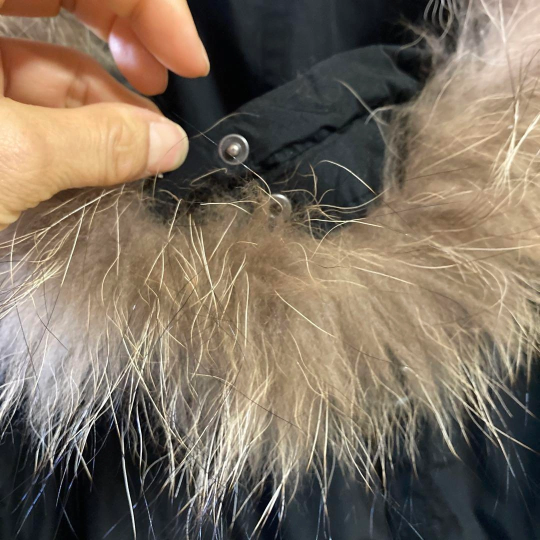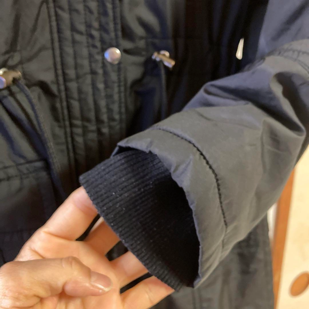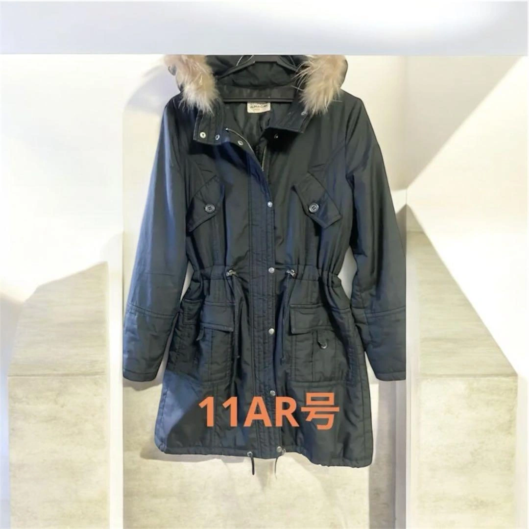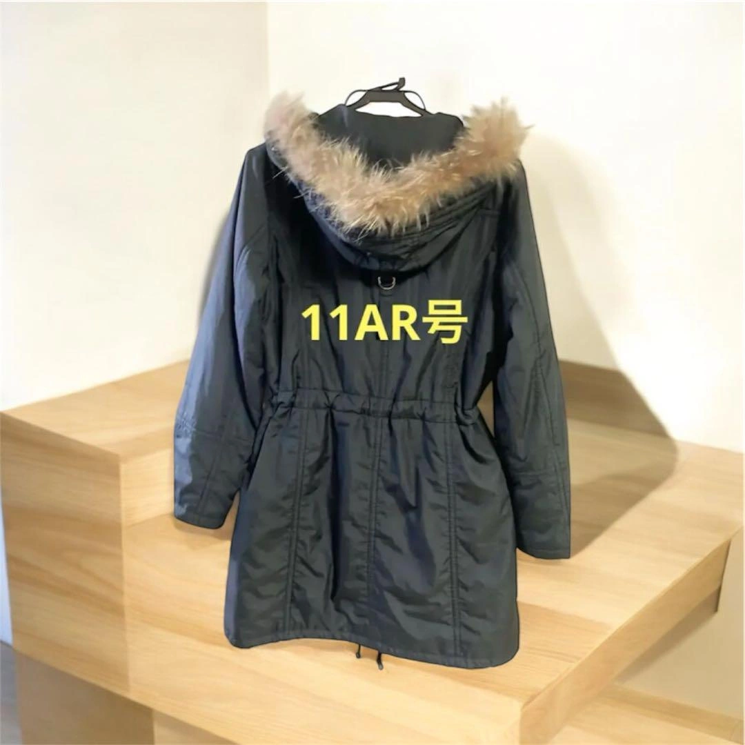 レディース中綿コート、11AR号です。(ARとは標準サイズのことです) 薄めの綿でスッキリしたシルエットです。冬の街着には十分暖かく、重宝しておりました。体型が変わってしまったため手放します。 ウエストはヒモで絞れます。 写真6のように袖口の中に風を通さない内袖がついてますので自転車やバイクでも暖かいです。 フードは本体についてますが、ボアは取り外せます。外した後のホックは隠れますのでボアを取って使っていました。ボアは外して使っていたので未使用品です。 肩幅43cm、身幅52cm、袖丈59cm、着丈84cm。素人計測のため、多少の誤差はお許しください。 コンパクトに畳んで梱包します。品物によっては圧縮梱包となりますので、折りジワなどはご了承ください。 着丈はミドル、カラーはブラックです。 フードは取り外し不可です。 ご希望の方はお気軽にご連絡ください。
