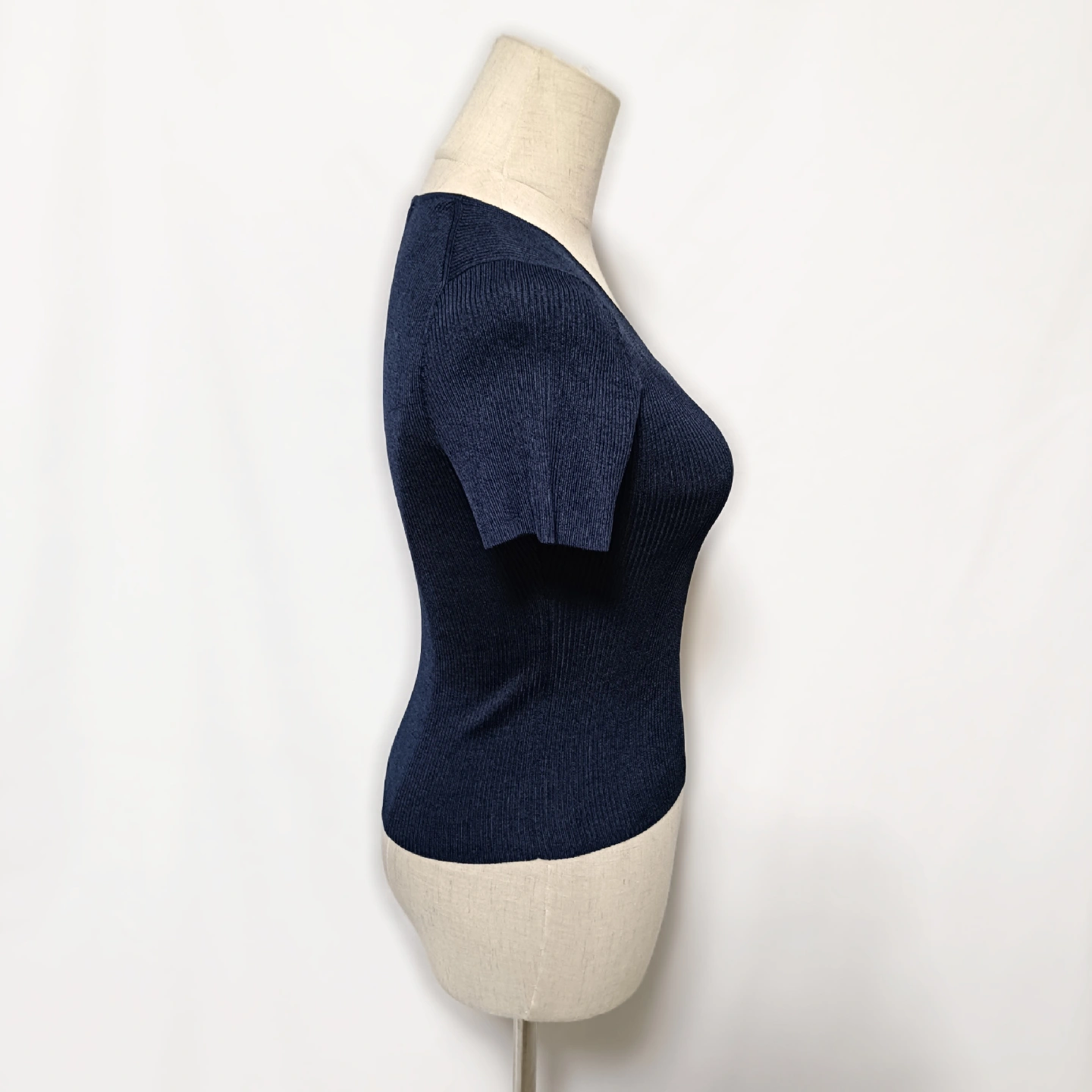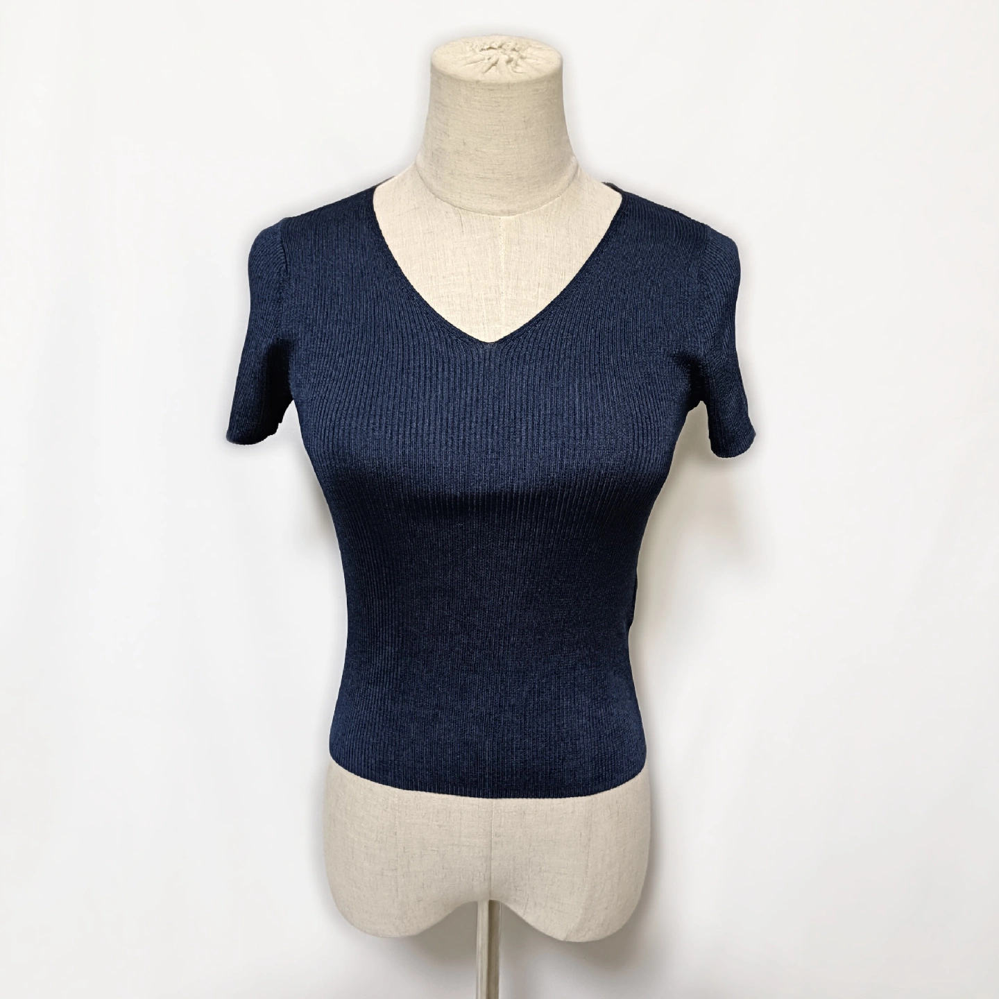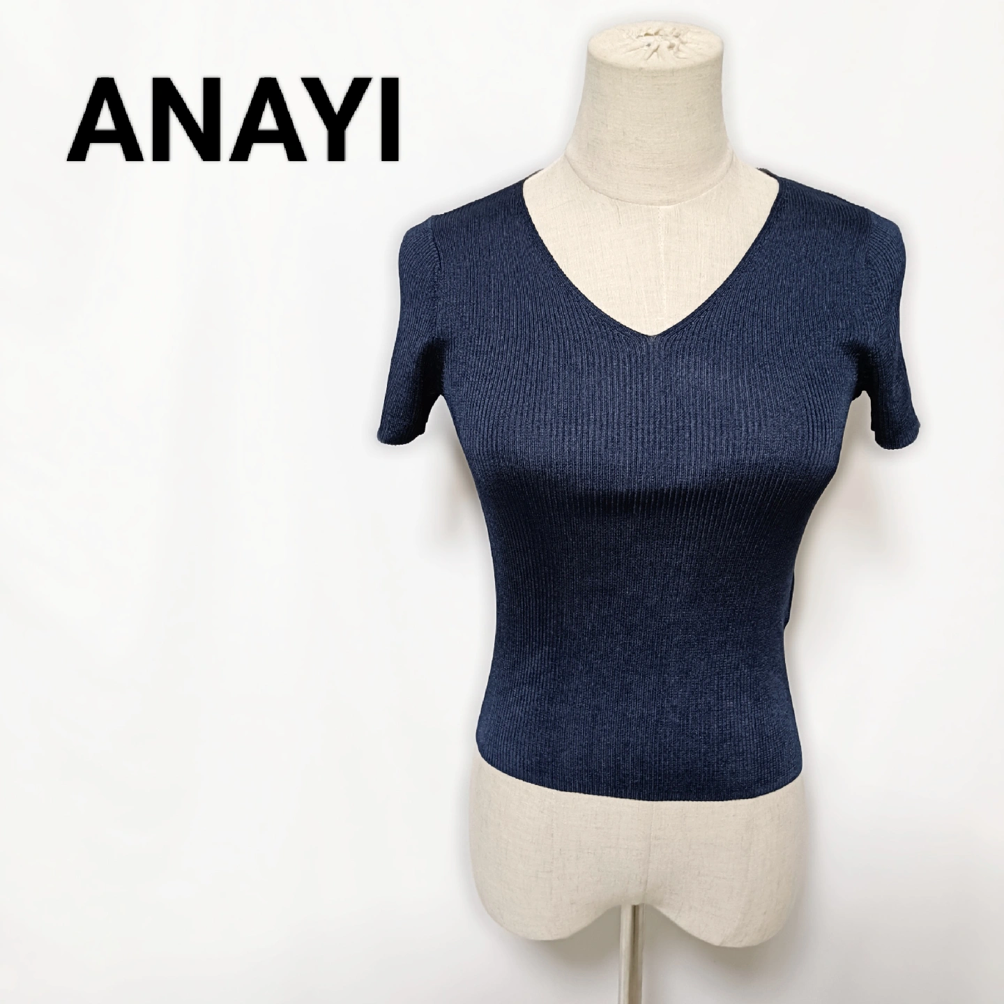 【ANAYI】美品 アナイ Vネック リブニット 半袖 トップス 濃紺 36