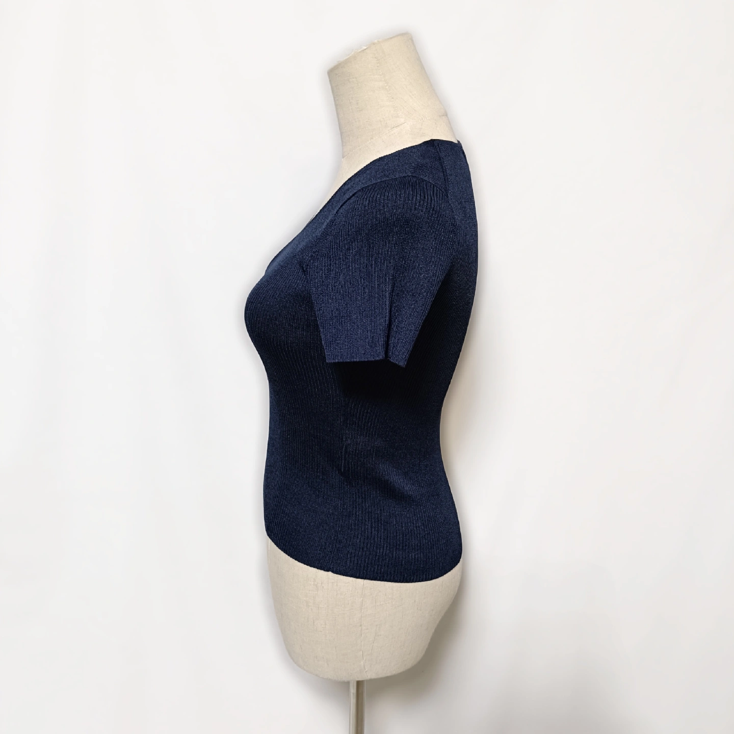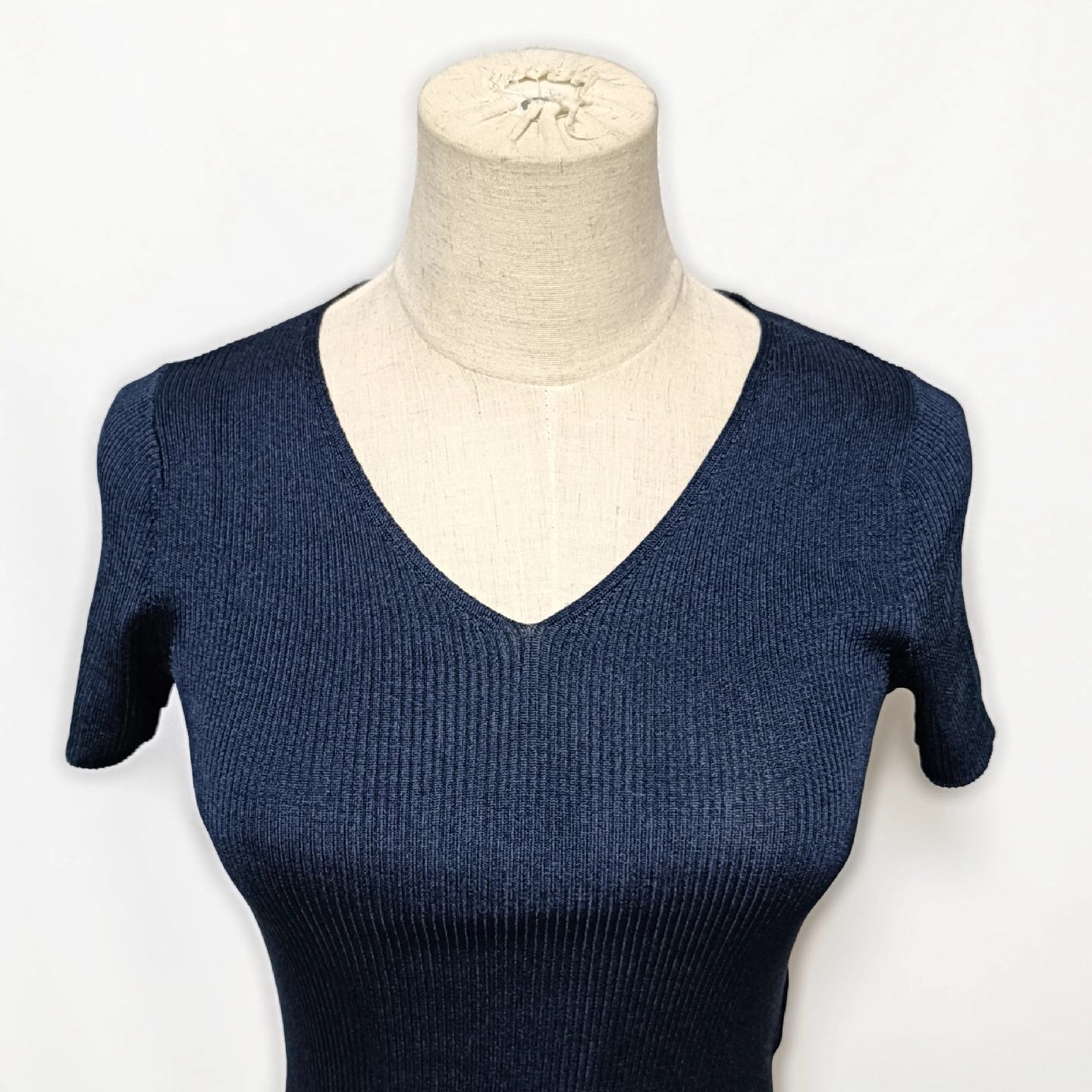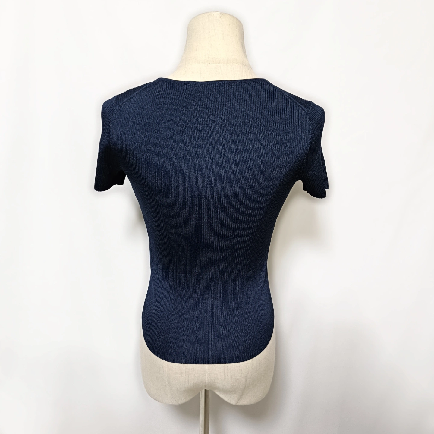 【ANAYI】美品 アナイ Vネック リブニット 半袖 トップス 濃紺 36