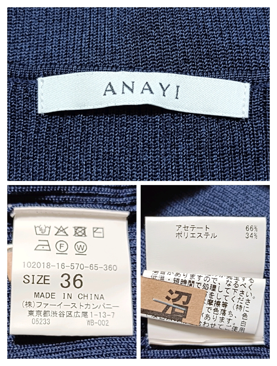 ご覧いただきありがとうございます! ANAYIらしい上質でエレガントなVネックリブニットです。 美しいデコルテラインを演出するVネック。 ​伸縮性のあるリブ編みで、身体に心地よくフィットし、細見え効果も抜群です。 ​濃紺(ネイビー)の上品なカラーで、オン・オフ問わず幅広いシーンで活躍します。 □商品名□ 【ANAYI】美品 アナイ Vネック リブニット 半袖 トップス 濃紺 36 □ブランド□ ANAYI アナイ □表記サイズ□ 36 □実寸サイズ(cm) □ 着丈:50 肩幅:34 身幅:34 袖丈:18 ※実寸につきまして多少の誤差はご了承ください。 ※表記サイズだけではなく実寸のサイズをご確認ください。 □カラー□ 濃紺、ネイビー □素材□ ​アセテート 66% ​ポリエステル 34% □コンディション□ 目立った汚れやダメージなど特にございません。 ※汚れはできる限り写真にて掲載しております。まずは画像をご確認ください。 どうぞよろしくお願い致します。 □商品管理番号□ EE1-V-5482