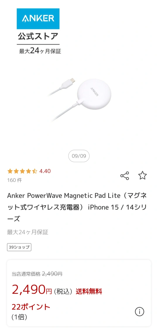 【情報】 ブランド:ANKER 種類:マグネット式ワイヤレス充電器 断捨離のため出品です。 今年の4月に購入しました。 【購入時価格】2500円ぐらい 【傷などの状態】とくに目立った傷はありません。 取引場所は目黒区の自宅周辺もしくは最寄駅の学芸大学駅でのお渡しになります。 ドタキャンしない方、中古品のためノークレームノーリターンでご了承いただける方にお譲りします。 よろしくお願いします。 https://item.rakuten.co.jp/anker/a2567/?scid=wi_ich_androidapp_item_share #Rakutenichiba