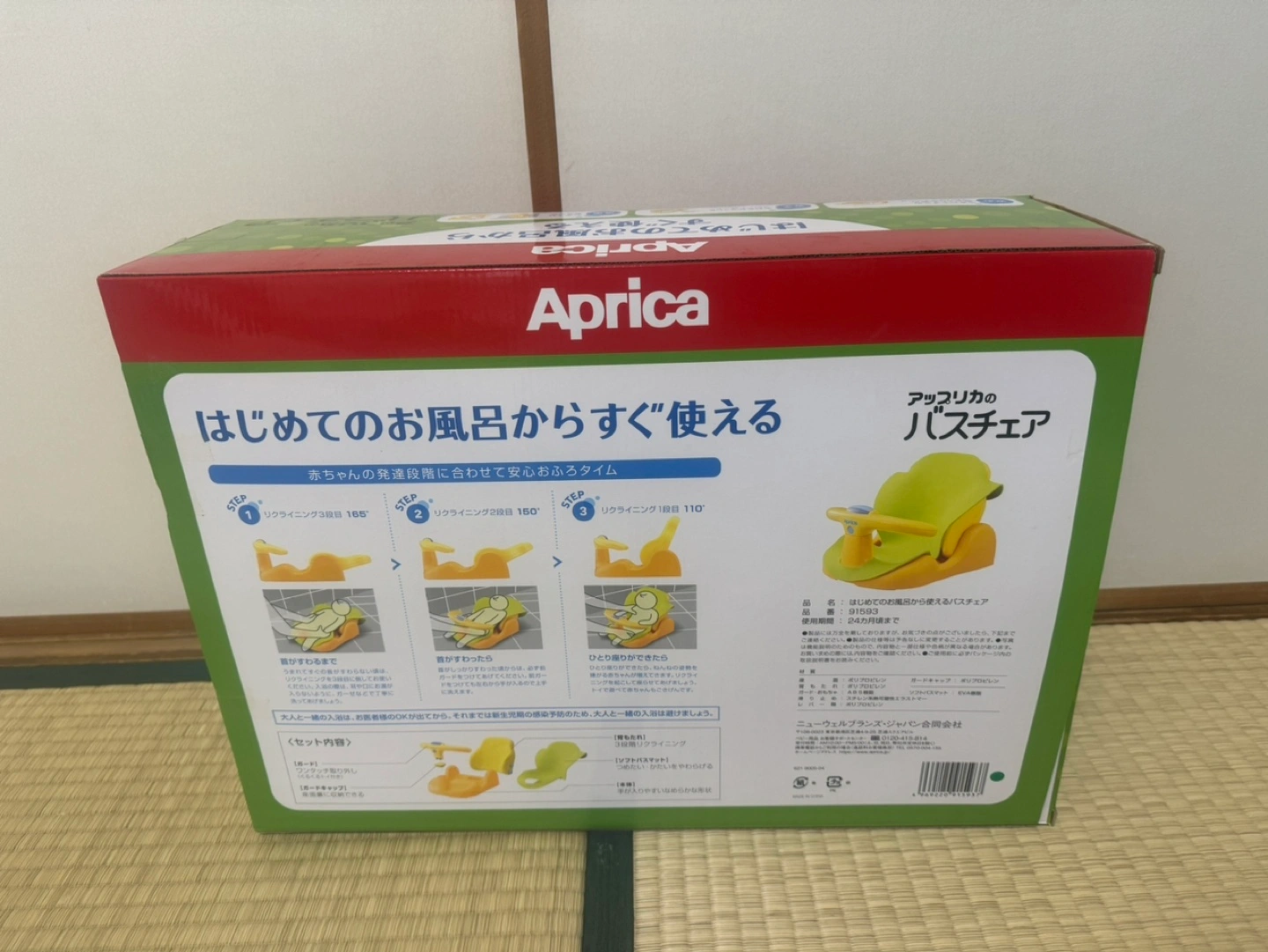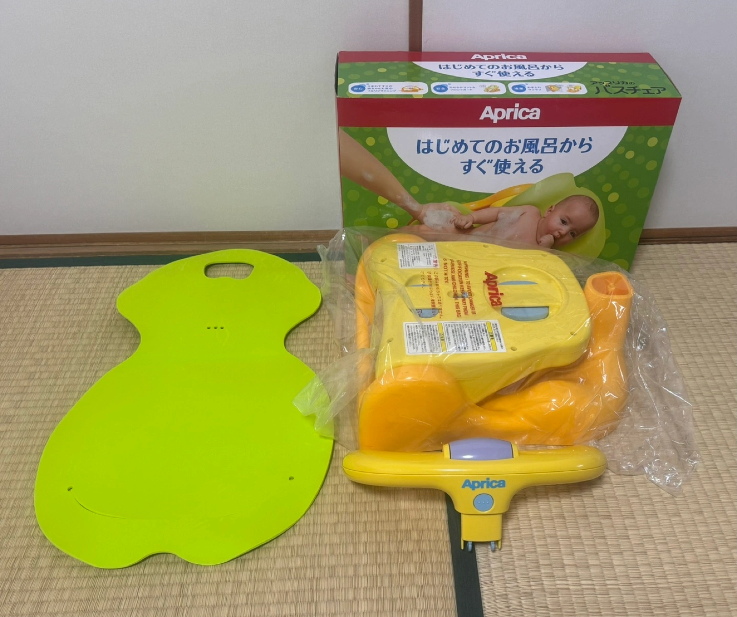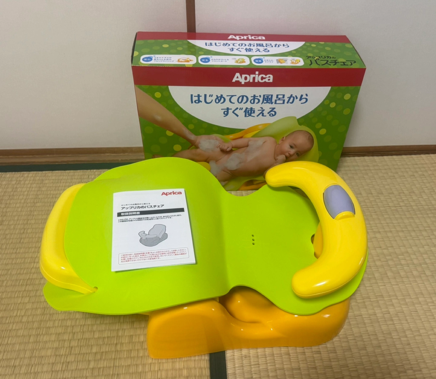 子供が大きくなって使わなくなりましたので、出品します。 3ヶ月ほど使 用しました。 多少の使用感はございます。 - ブランド: Aprica - 色: イエロー・グリーン - 用途: ベビーバスチェア - 説明文: はじめてのお風呂からすぐ使える - 対象年齢:新生児~24か月 - チェア時サイズ:W34.5 × D41~53.8 × H22.5~32 (cm) - ベッド時サイズ:W34.5 × D55.9 × H22.5 (cm) ※ガードをとった時H16.1(cm) - 収納時サイズ:W34.5 × D41 × H22.5 (cm) - 付属品:マット、説明書、箱 中古品ということをご理解いただいた上でご購入をお願い致します。