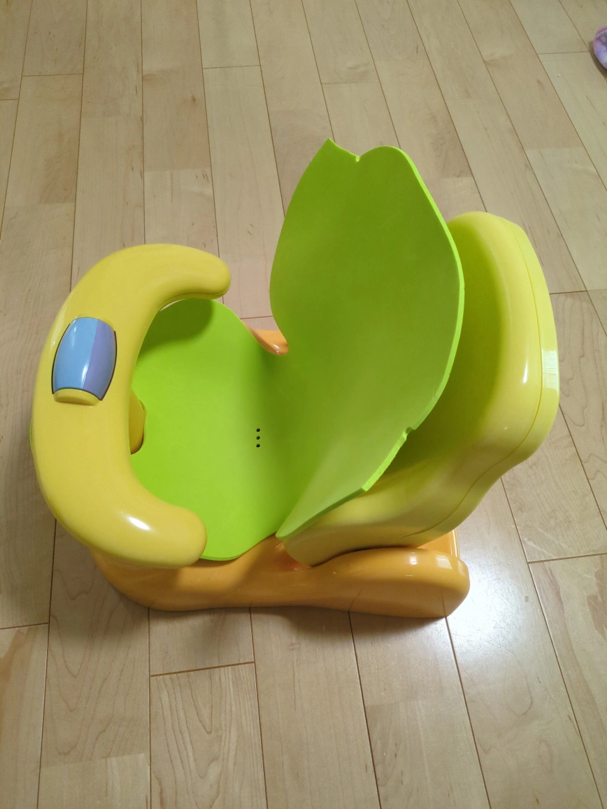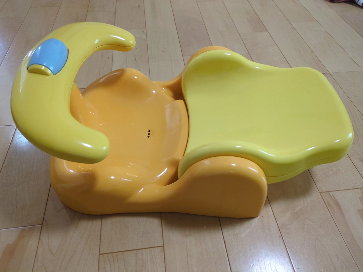 お風呂や離乳食で姉妹に使用しました。 緑色のシートは無くても使えますが、背中の上部が一部切れてなくなっています。(写真1枚目参照)説明書と箱もあります。 リクライニング仕様なので、しっかり首が座って居なくても、寝んねの状態で使用できるので、我が家ではお風呂で待っていてもらう時に重宝しました(*^^*) まだまだ使えますのでお安くいかがでしょうか? お近くでしたら車でお運びも可能です。 ご相談ください(●´ω`●) 定価3600円くらいです。